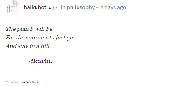 Yesterday I came up with what undoubtedly is the world's best haiku. The fact that it was 100 % accidental makes it only better: