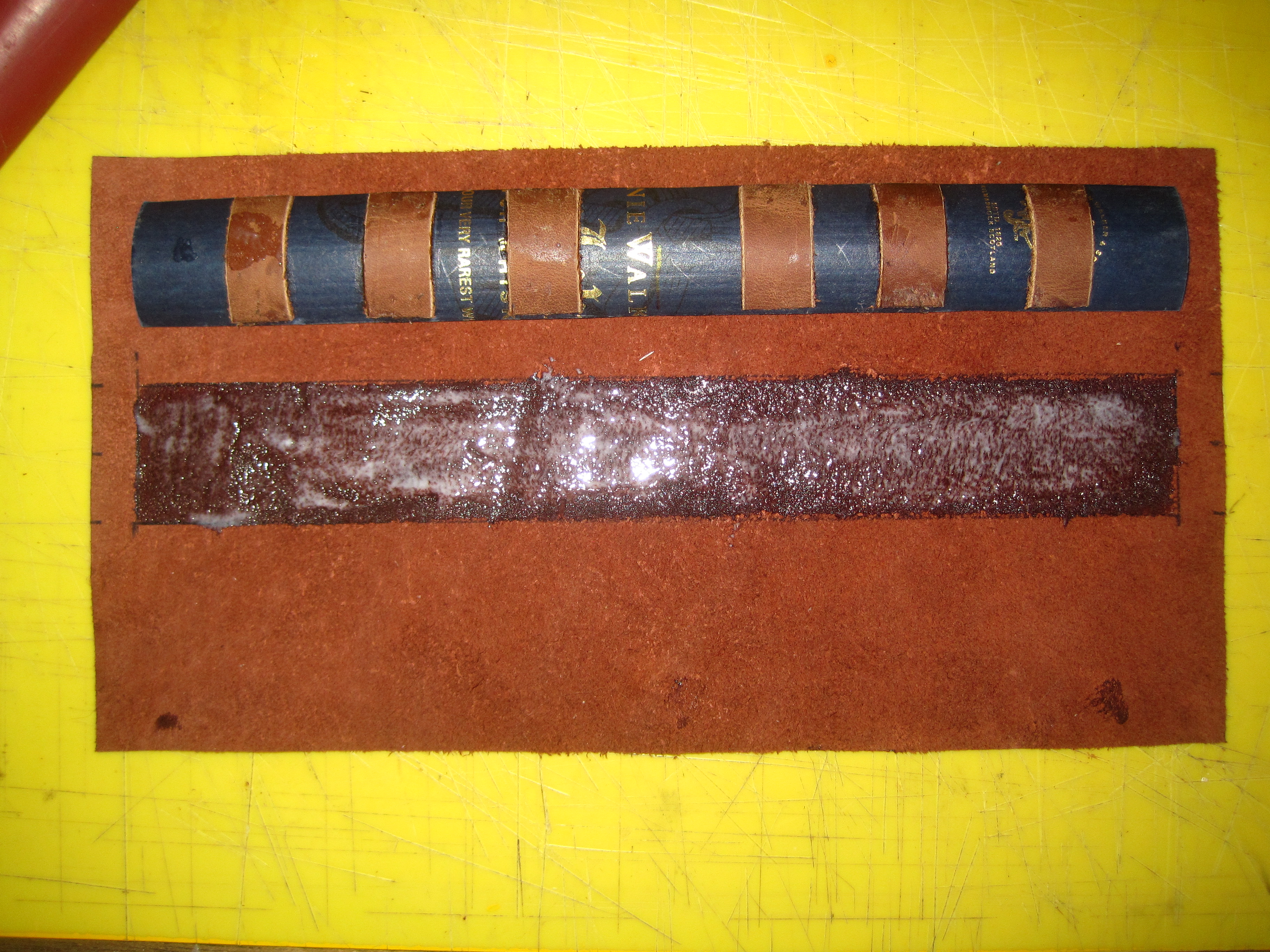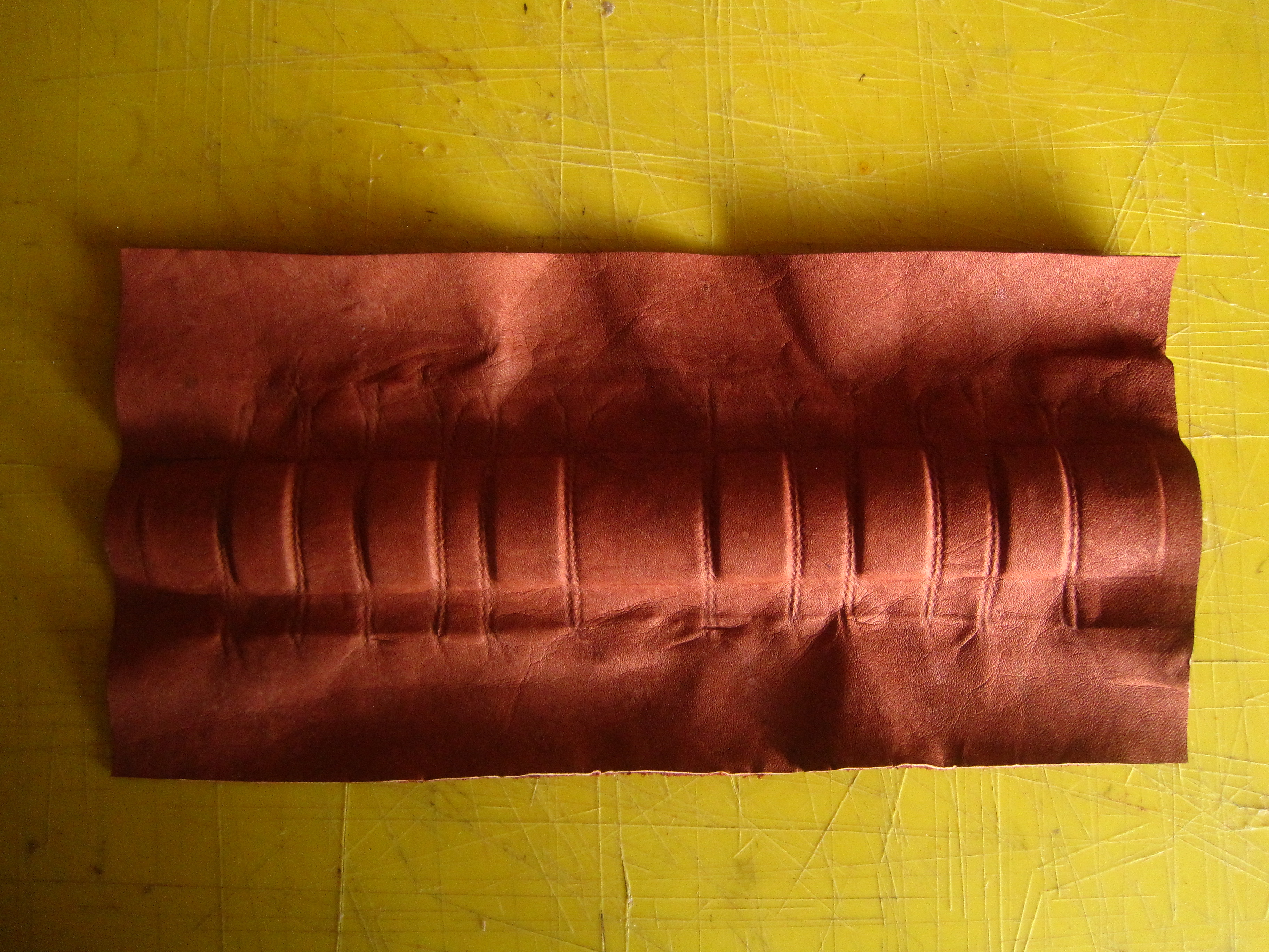 Application of leather "ribs" to the cardboard: