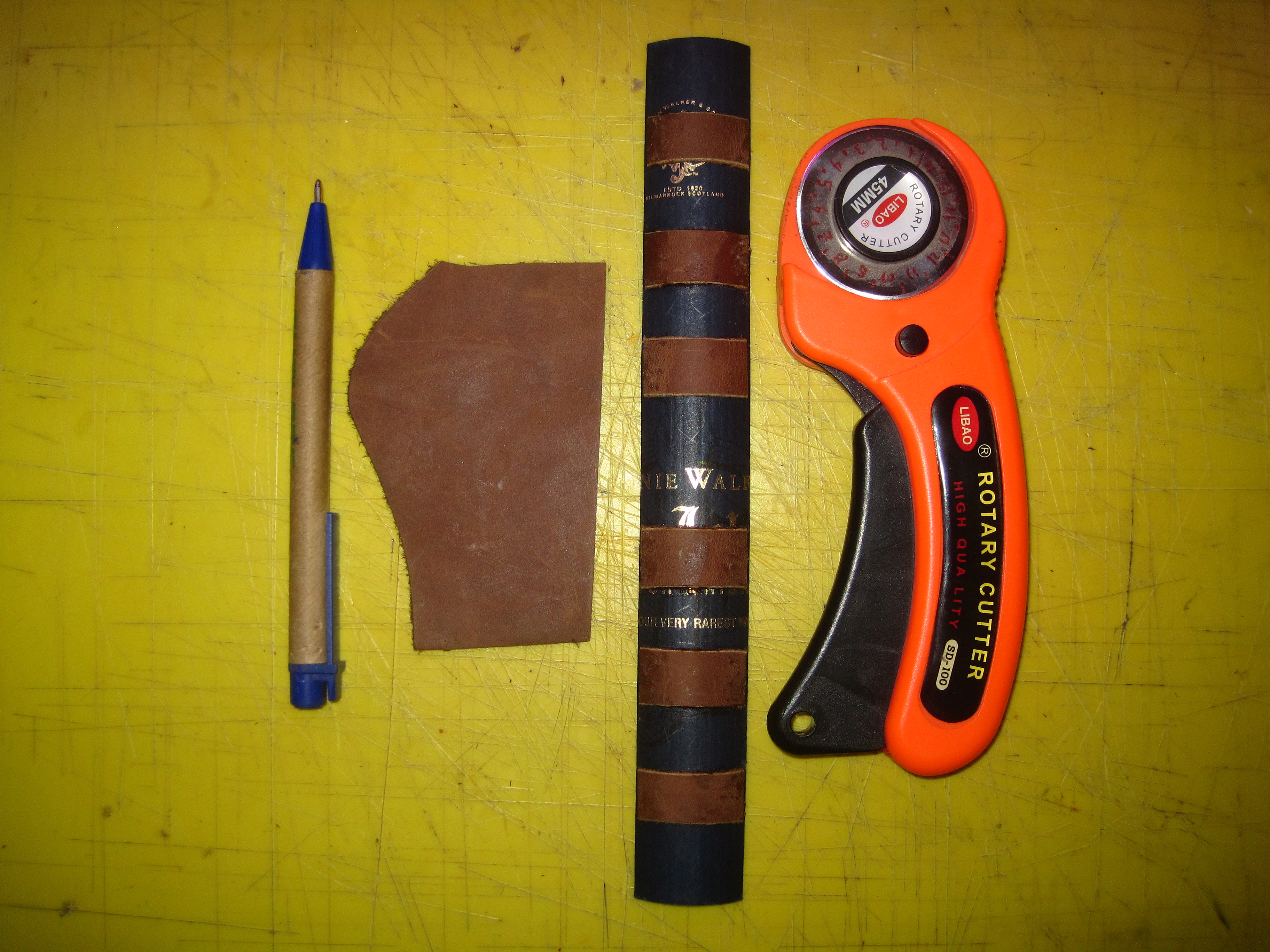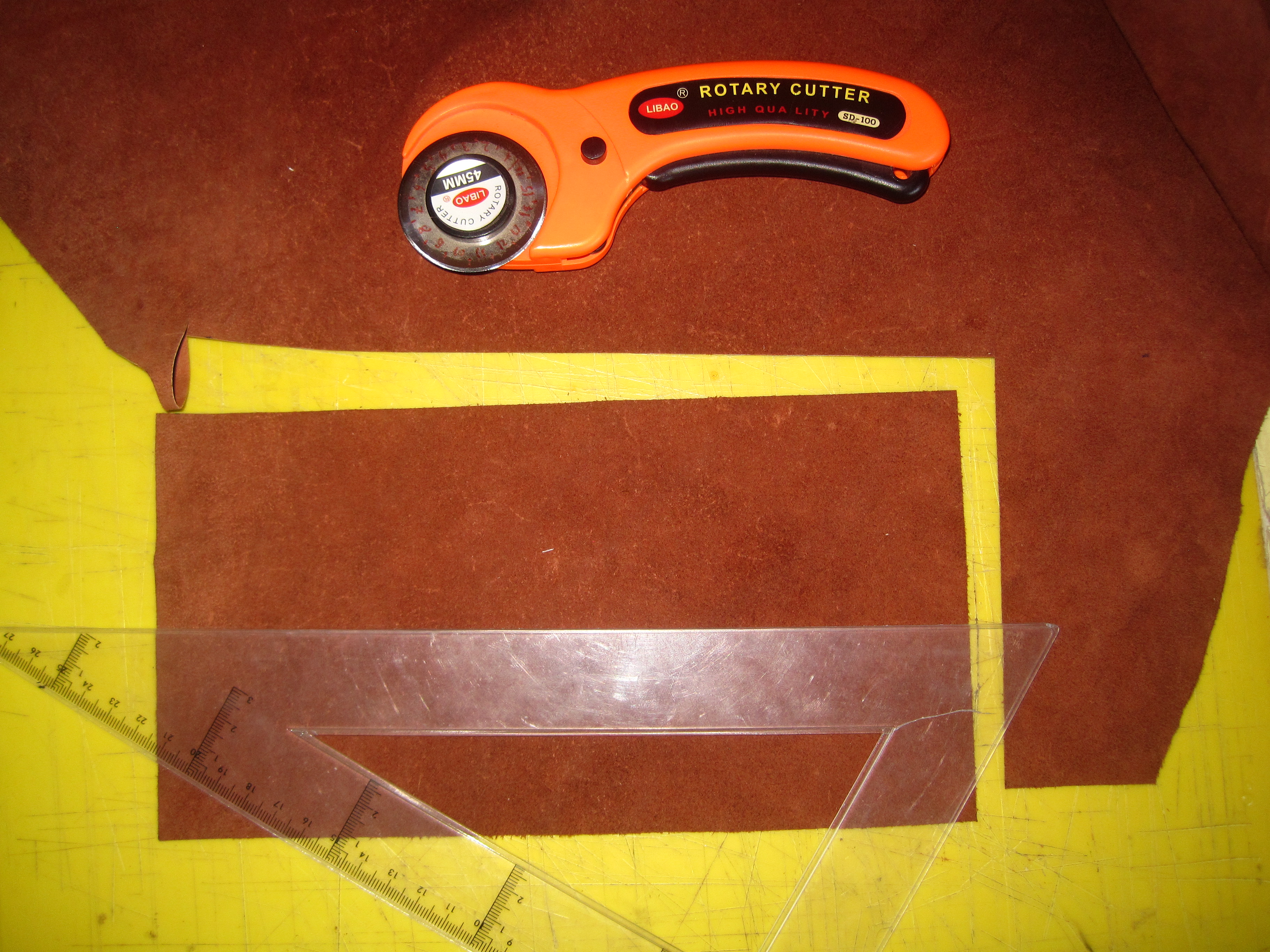 Cutting a leather cover for the spine: