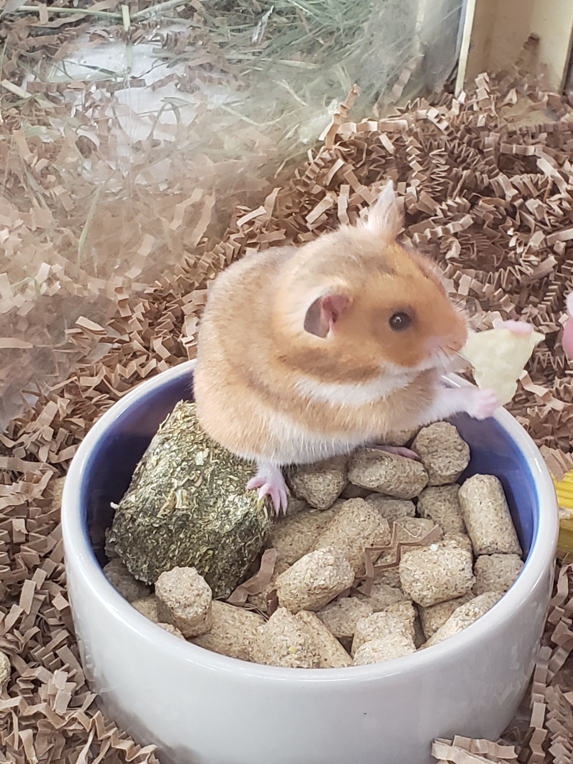 King of the worldbestfrank (43)in #happy • 6 years ago This little guy is living his best life. He's got a fresh piece of fruit and is enjoying it atop of a pile of grade A hamster food pellets. He does'nt know if but tommorrow he is getting a little plump girlfriend to keep him warm at night. #pets