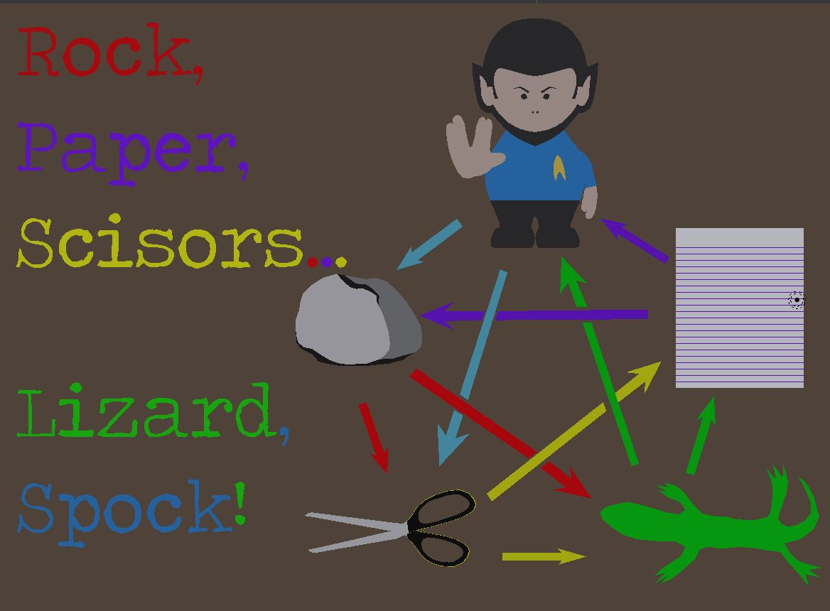 I also made a game NOT so loosely based on the "rock, paper, scissors, lizard, spock" game, Made popular on "the Big Bang Theory" (my game is without sound for the time being rendering it quite boring.)
