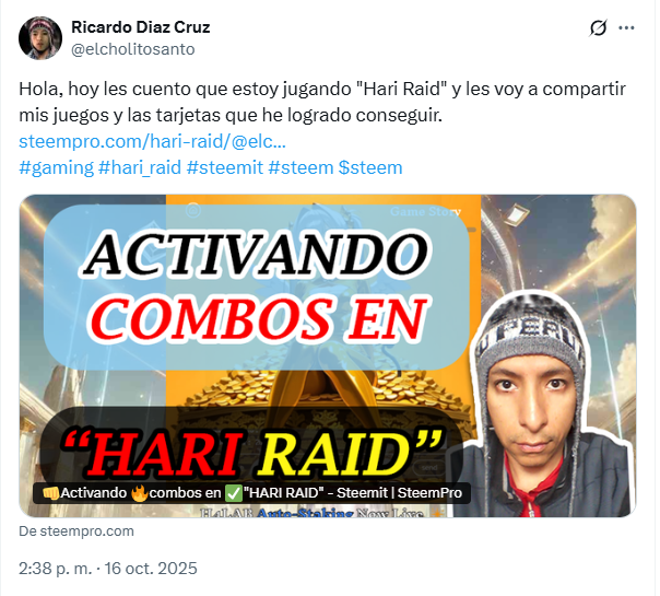 You are viewing a single comment's thread from:RE: 👊Activando 🔥combos en ✅"HARI RAID" - SteemitView the full contextelcholitosanto (65)in #hari-raid • 6 months ago https://x.com/elcholitosanto/status/1978908434478055499