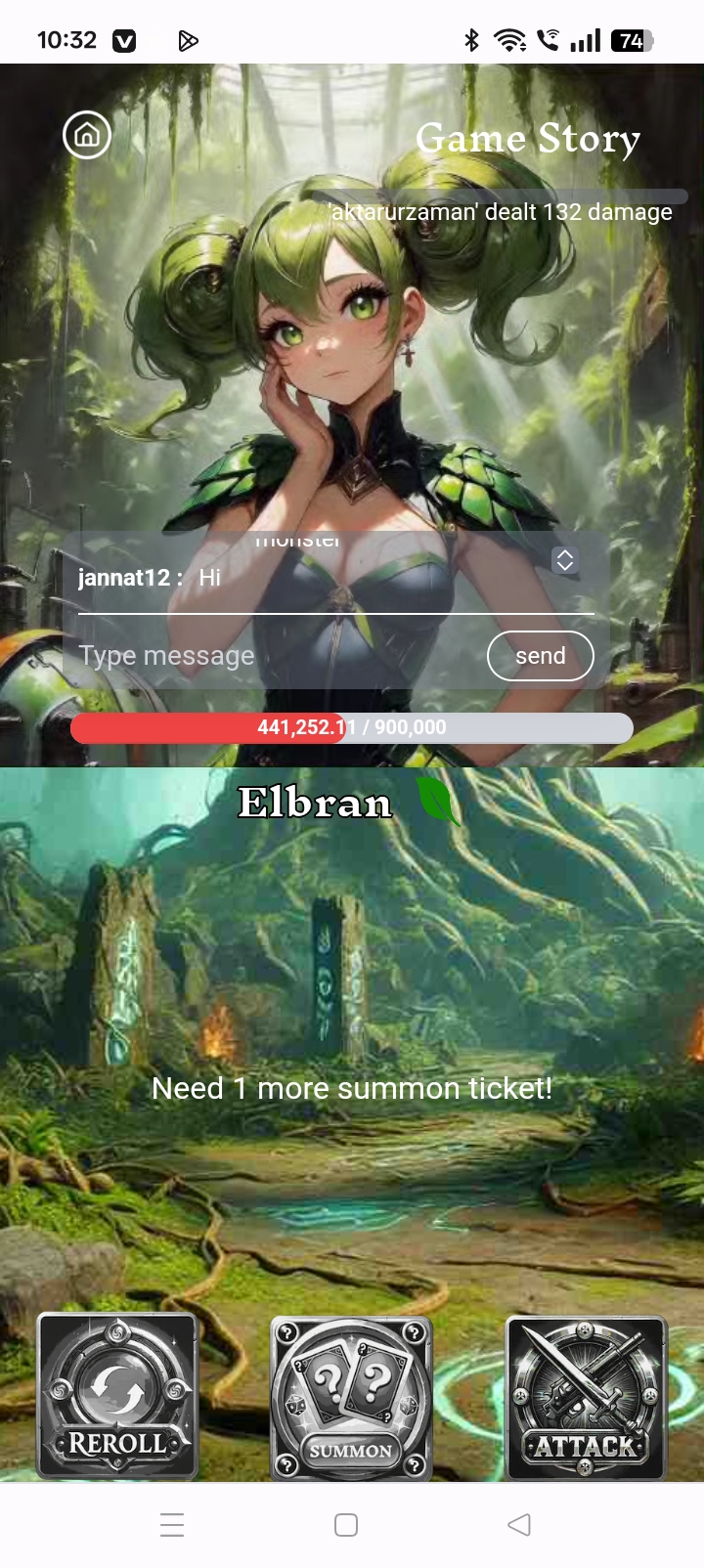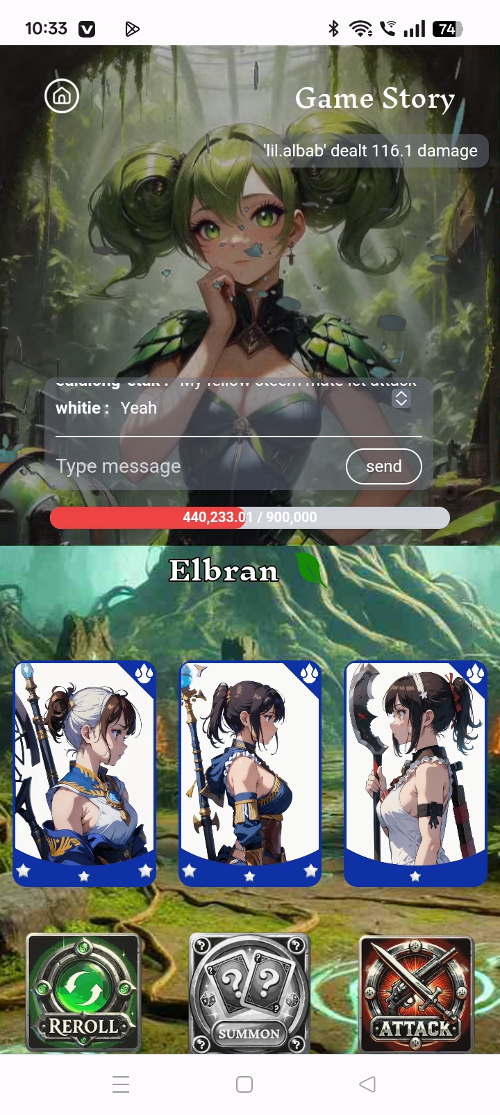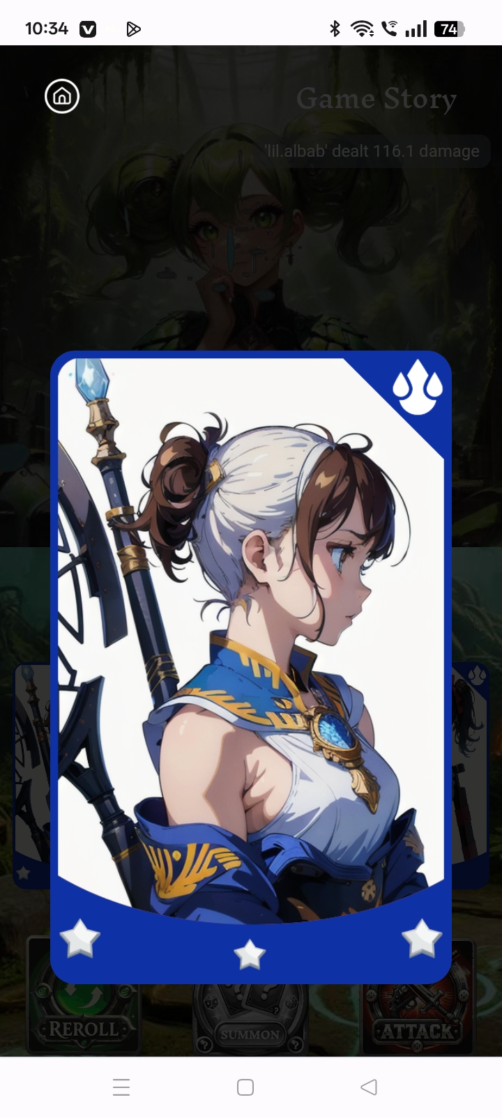 The reroll button allows you to select a new character card. The summon button allows you to bring in a new hero or character – a kind of lucky draw. The attack button initiates the battle.