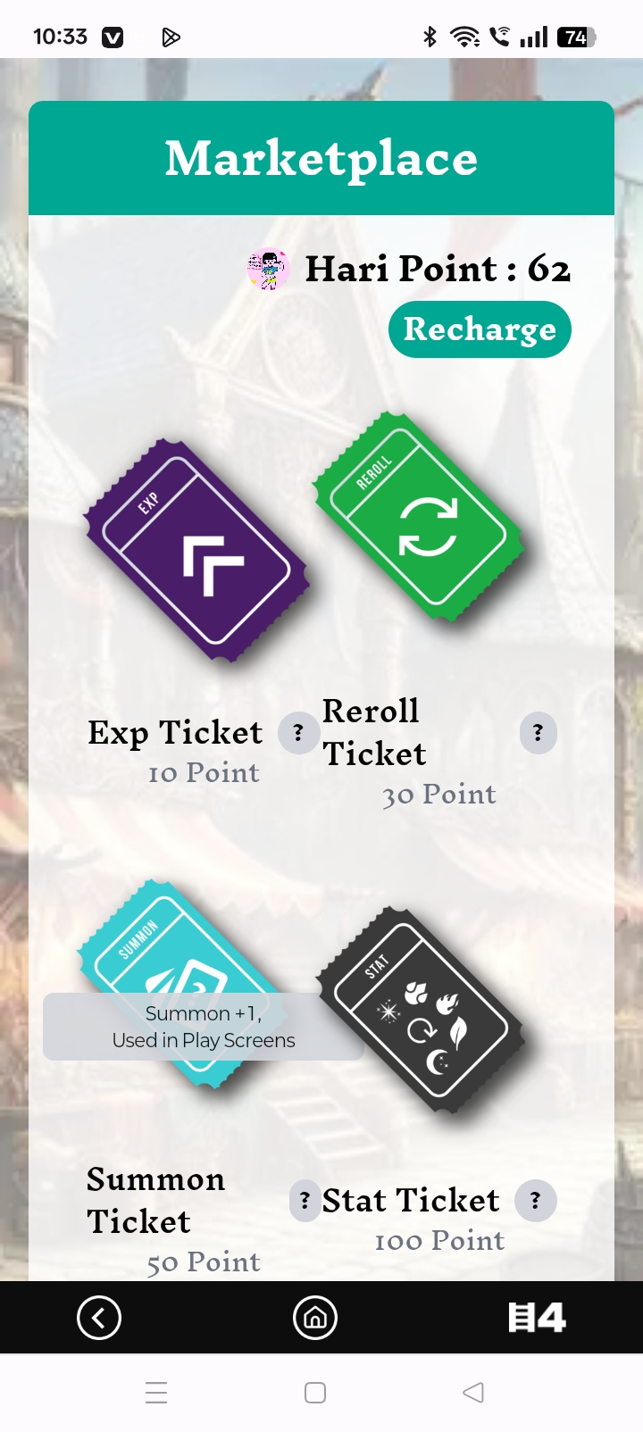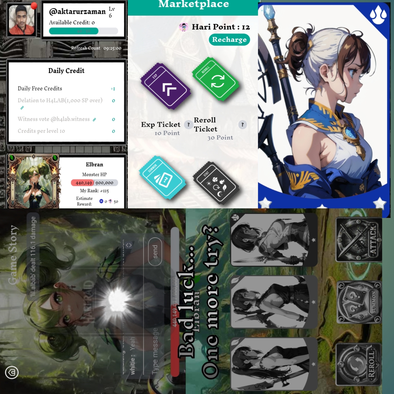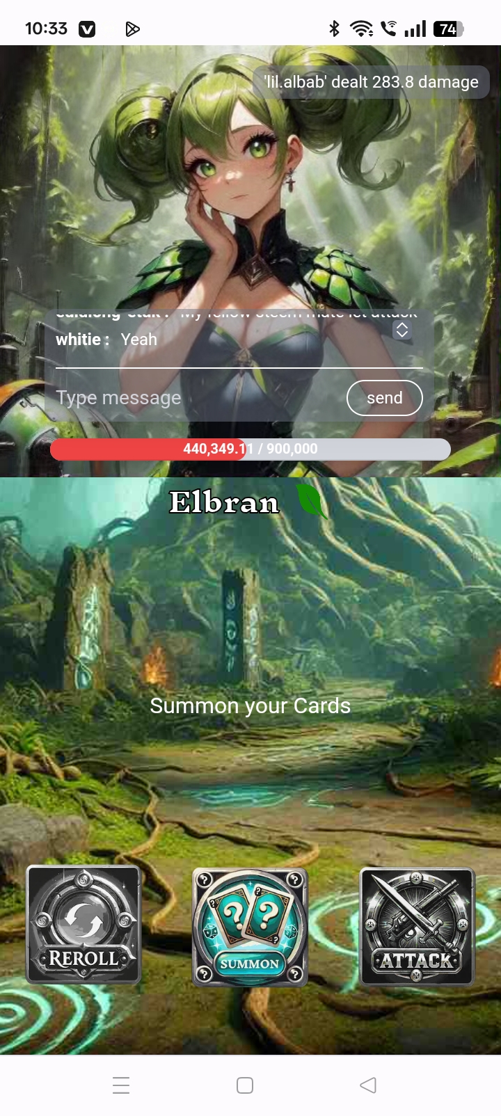 The reroll button allows you to select a new character card. The summon button allows you to bring in a new hero or character – a kind of lucky draw. The attack button initiates the battle.