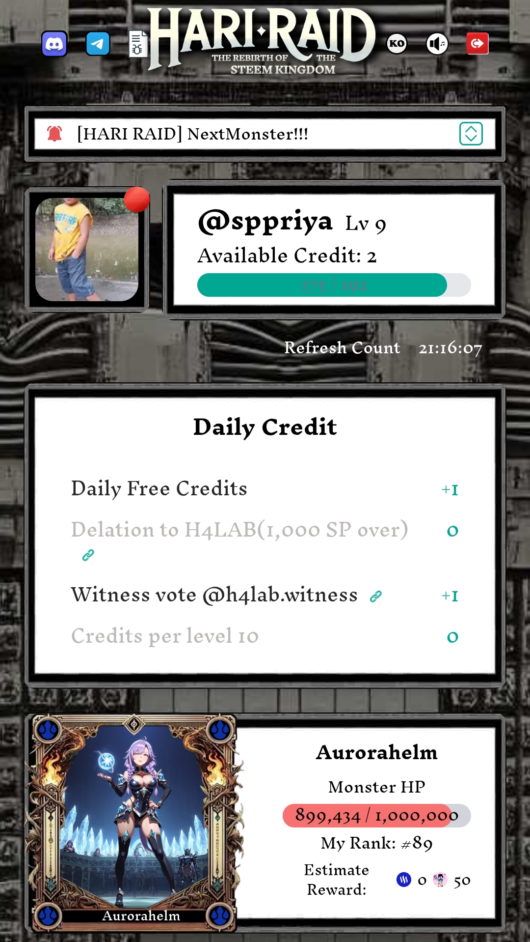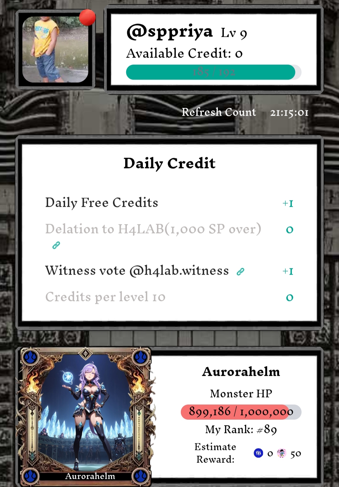 The first thing I noticed upon entering the game was that my starting level was 7 and I had 2 attack credits. This meant that I would have the opportunity to attack twice at that moment. After exploring the game for a while, I saw a claim button at the bottom. I clicked on it and 10 points were instantly added to my account.
