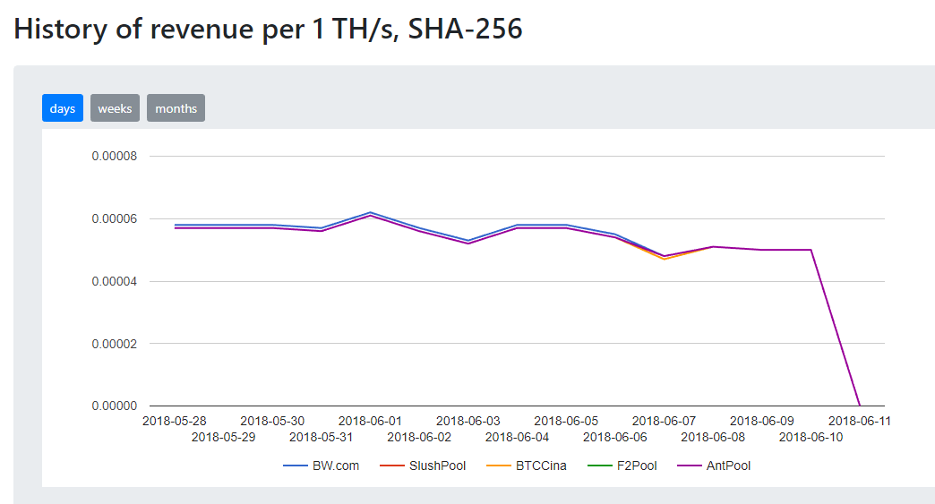 Hashflare revenue for each mining pool