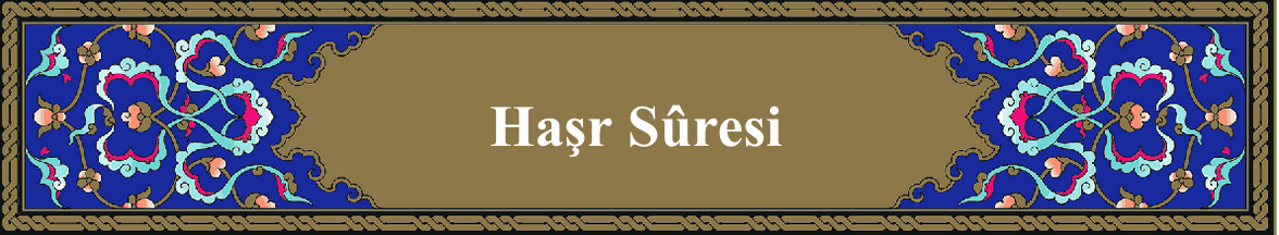 Medine döneminde inmiştir. 24 âyettir. Sûre, adını ikinci ayette geçen “elHaşr” kelimesinden almıştır. Haşr, toplamak demektir. Sûrede başlıca,Medine’de yaşamakta olan ve Hz.Peygamberle yaptıkları antlaşmaya ihanet ederek İslâm toplumunu ortadan kaldırmak üzere Mekkeli müşriklerle ittifak yapan Nadîroğulları’nın Medine’den topluca sürülmesi hadisesi ile Yahudilerle antlaşma yapan münafıklar konu edilmektedir.