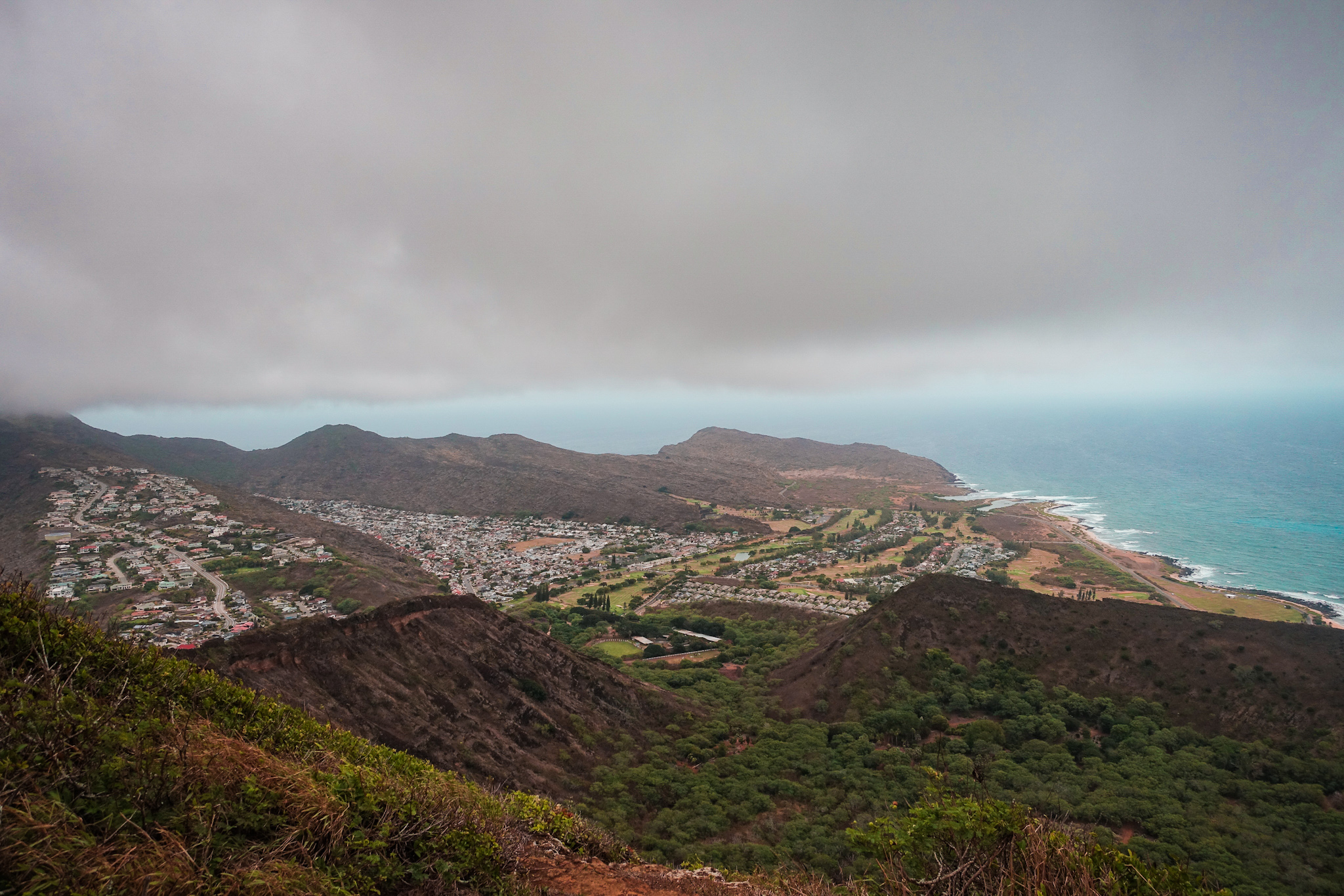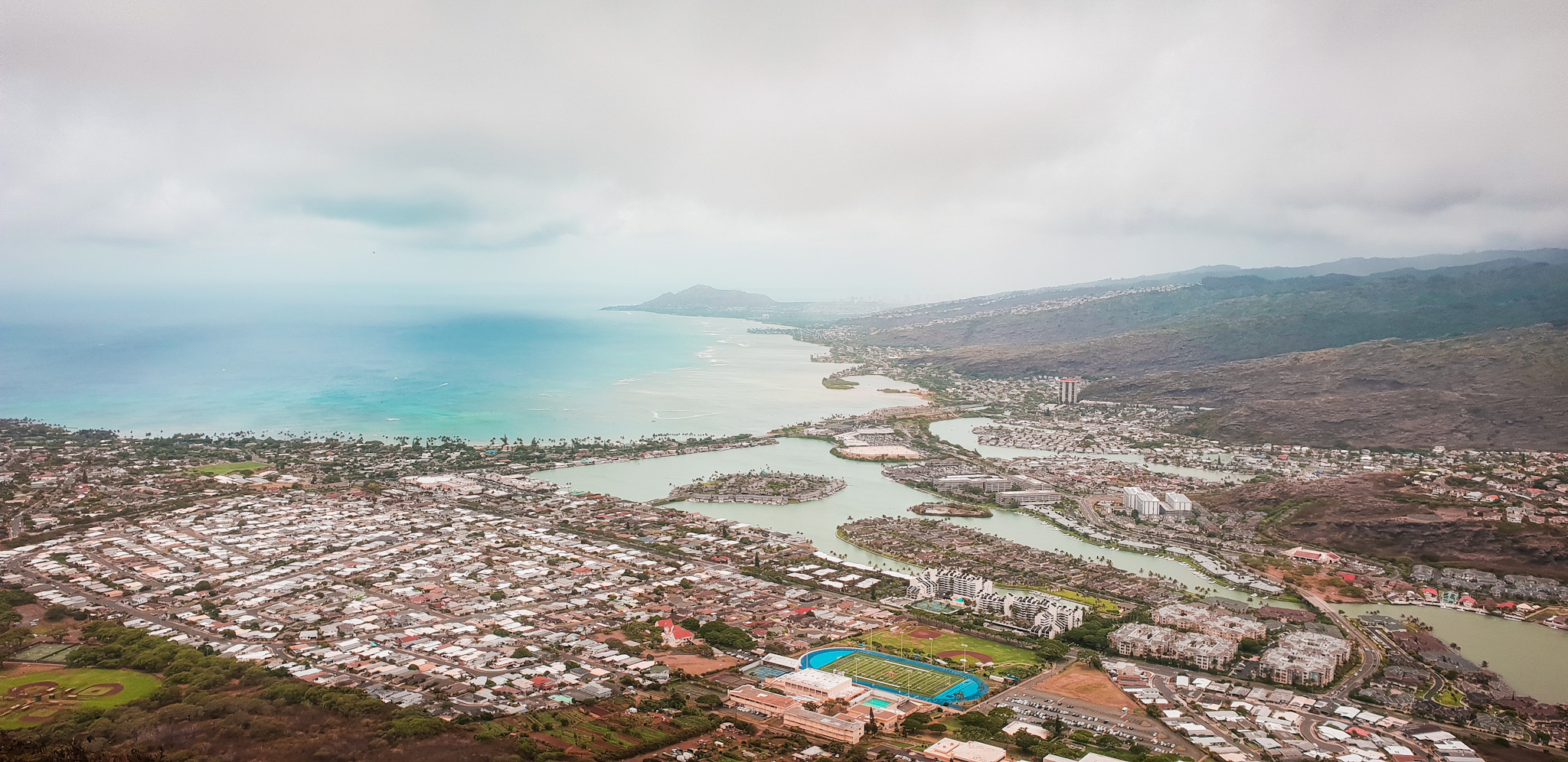 When you get to the top the spectacular panoramic views of the east Honolulu shoreline are more than worth it, even on a cloudy day.
