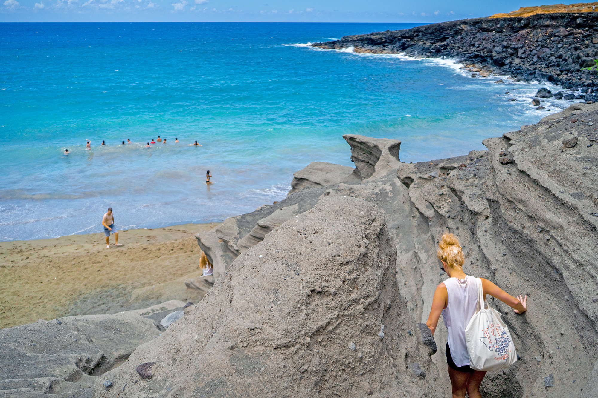On the Big Island in Hawaii, there is a hard-to-get-to beach that either takes HOURS to hike to in the blazing sun through sand dunes, or you can pay an old Ohioan man named Tim to take you down in his off road pickup truck.