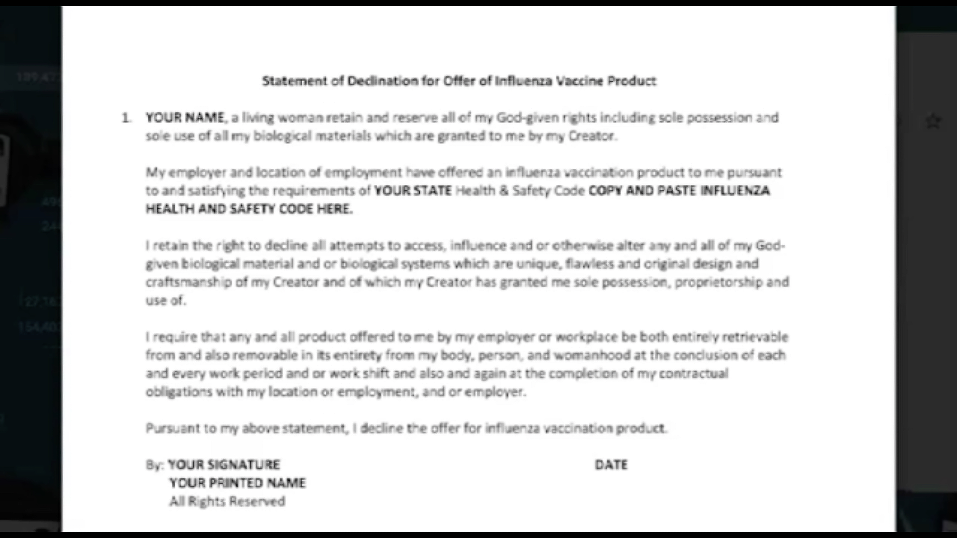I would be happy to accept your offer if you can prove that there’s not a 1% chance I could be injured or killed if you can prove that this injection cures anything if you can prove that this injection has been thoroughly tested for absolute safety if you can prove that the Sars Cov II infection has been isolated as a naturally occurring, deadly virus or whether it is a man-made bioweapon, if you can prove that it has not caused injuries or death to those who have already received it, I will gladly accept your offer.