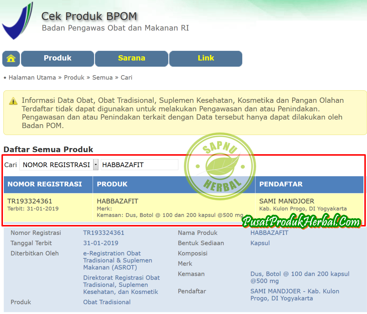 Legalitas Produk "HabbazaFit Softgel"