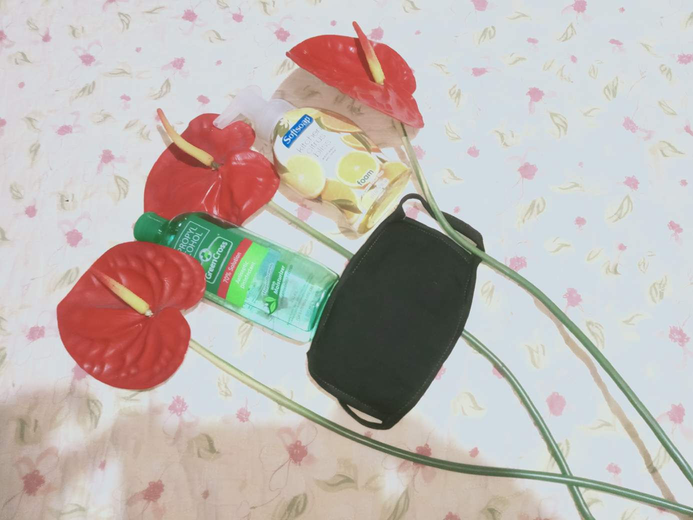 here in the Philippines instead of giving them ordinary bouquet of flower we give them flower with face mask , alcohol and also hand soap