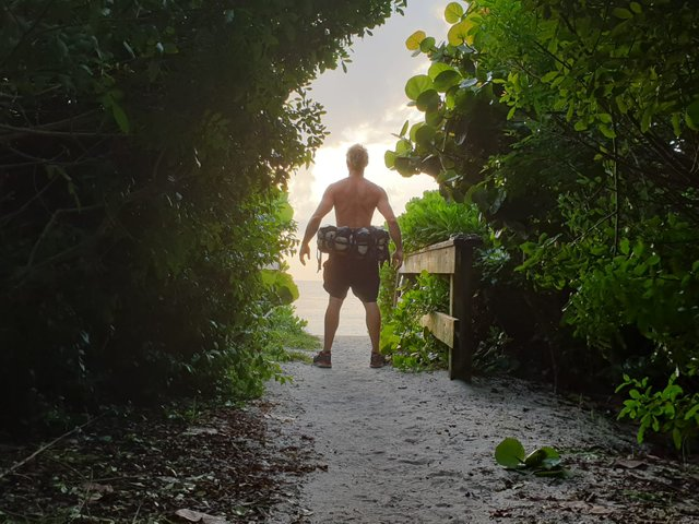 In my Batman Superhero Belt is a bug-proof camouflage hammock, which I'm really comfortable sleeping in, between any two trees. I wear thru my shoes every couple of months, and mail myself new pairs to addresses ahead of me. The most frequently asked question is "what's the goal?" My immediate response is.... STAY ALIVE. My second response is….