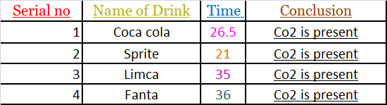 AMONG THE FOUR SAMPLES OF COLD DRINKS TAKEN —SPRITE HAS MAXIMUM AMOUNT OF DISSOLVED CARBON DIOXIDE AND FANTA HAS MINIMUM AMOUNT OF DISSOLVED CARBON DIOXIDE.