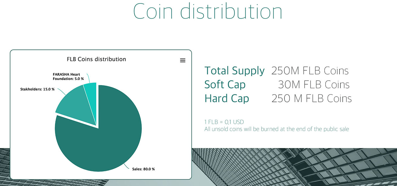 The ICO main sale will begin in September 2018 and will continue until FARASHA reaches the $ 25M Ether or Bitcoin hard cover or by the end of October 2018. An amount of 200,000,000 FLB, which is 80% of total supply will be available for sale during the main ICO with minimum investment value is $100. The FLB base price is 1 FLB = 0.1 USD. Farasha ICO will accept ETH, BTC, LTC, Fiat as payment method. For more information, you can visit https://ico.farasha.care/.
