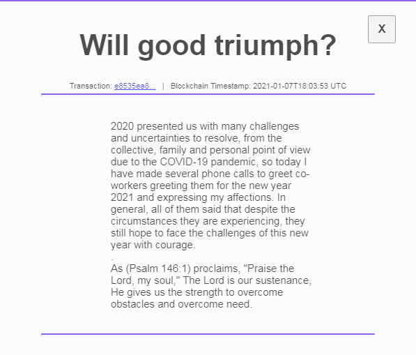 For today January 7, 2021, I leave here a printscreen of what I publish today in my Daily Telos and also the support of the transaction.