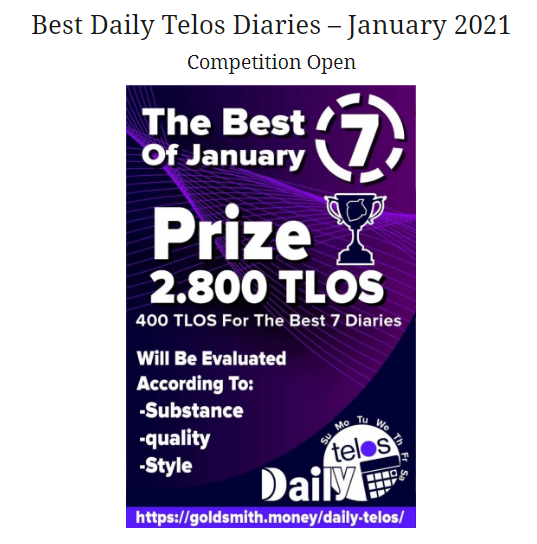 To promote this initiative @goldsmith.money is promoting for the month of January the competition for the seven best diaries with a prize to be awarded of 2800 Tlos in total. Here I place the call to the contest in which you as member of HeartChurch must subscribe to the Daily Telos if you have the Tlos account with .jc format. Our participation in the contest will strengthen our community and allow us to grow in this beautiful initiative.