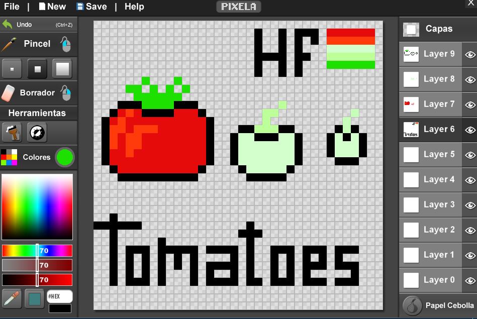 Hello! Today I bring more pixelart, in this case some tomatoes and as I have already done it several times, I thought it was right to do it in various stages of their growth. I also added the word "tomatoes", to practice a little my pixelart letters, I think they have been regular.