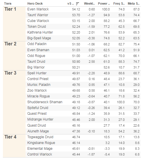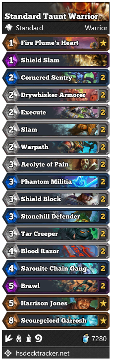 Despite still being an excellent deck, Taunt Warrior is having a harder time, especially against some of the warlock variants. The meta going forward will determine whether it will retain its position as a top deck or fall more out of favor.