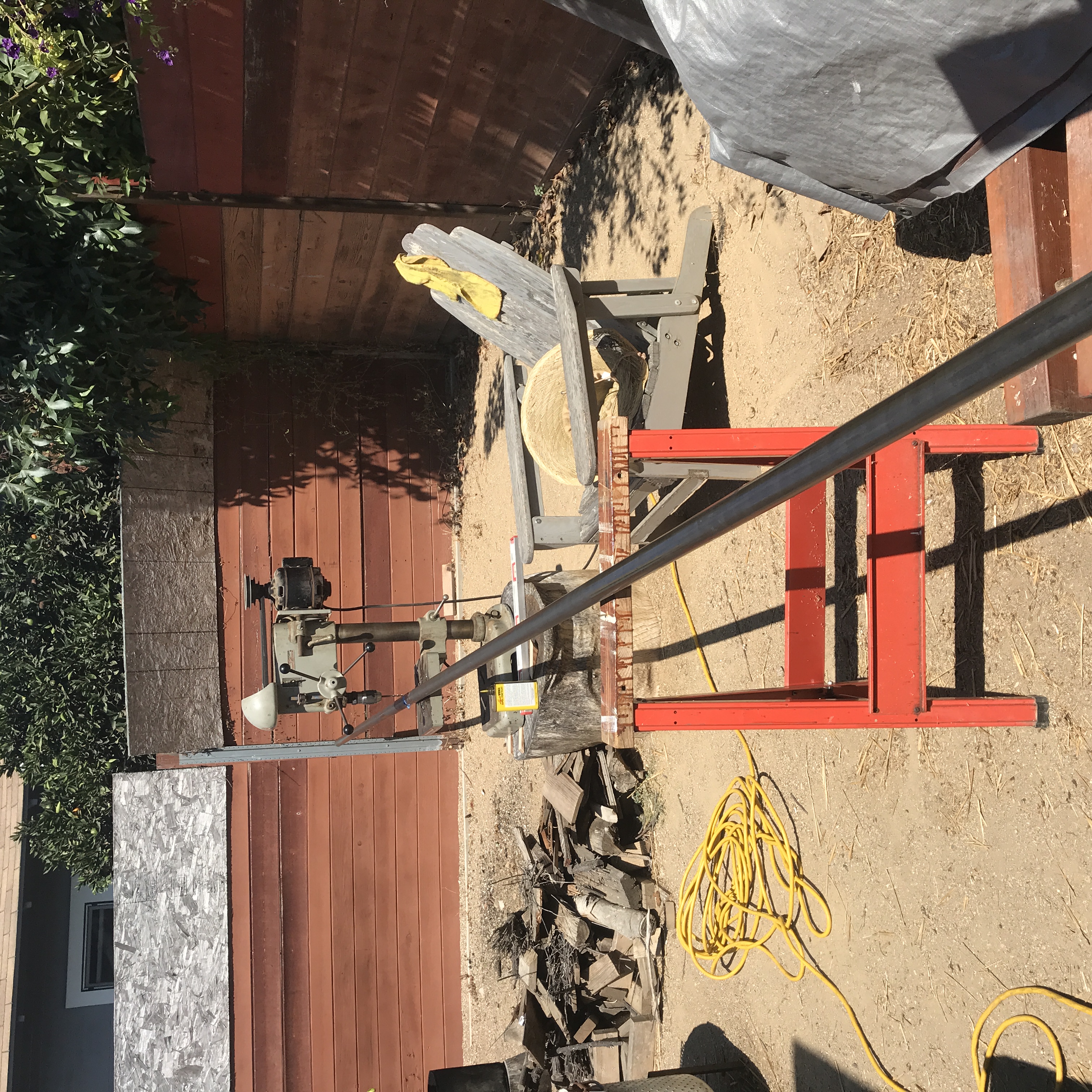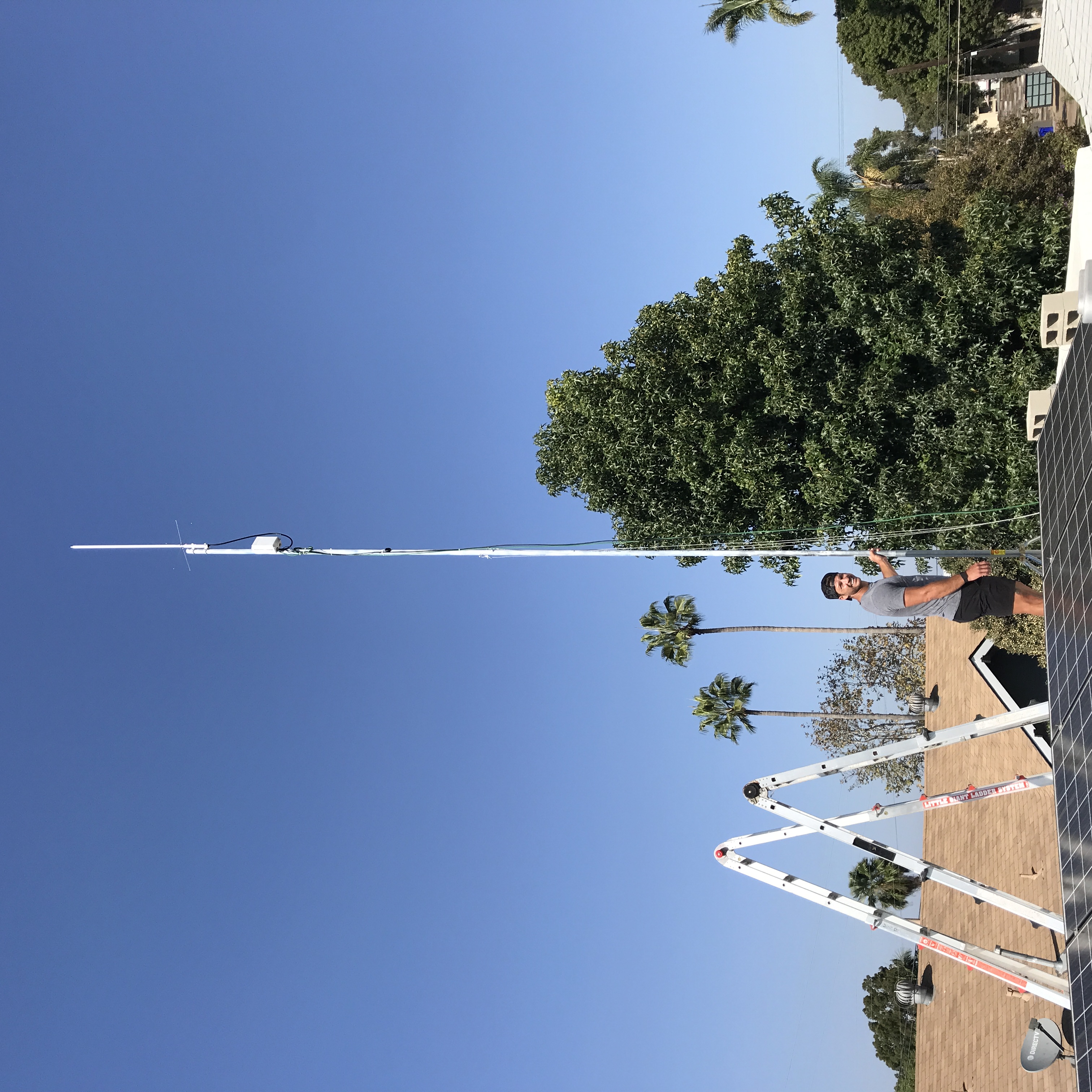 I secured the mast with guy wires, had to drill holes in the mast for that. The mast was so long it didn't fit in my small shop, so I had to lug my 142 lb drill press into the backyard!