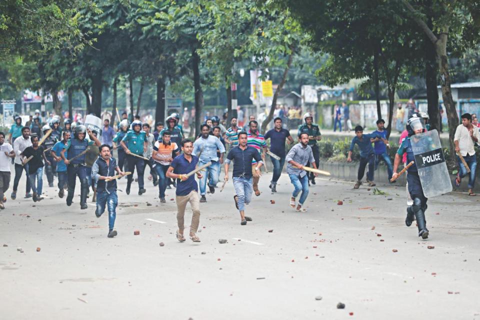 On Saturday the protests took a violent turn in Dhaka’s Jigatala neighbourhood, with more than 100 people as police fired rubber bullets at demonstrators.