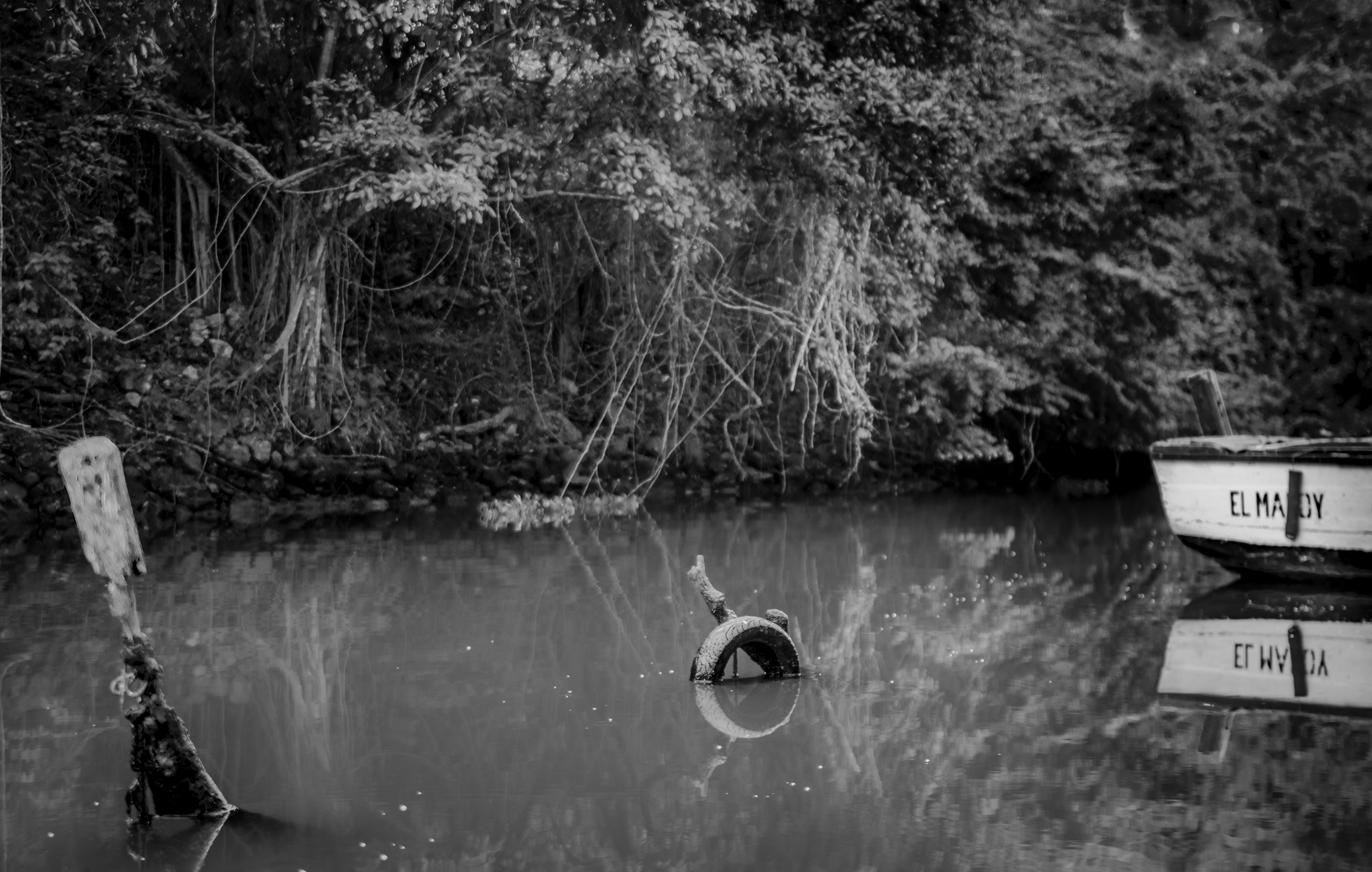This is a picture of the berth where the old man set sail towards his tribulation in Hemingway's "The Old Man and the Sea". The picture was taken upriver looking towards the sea in Cojímar, Havana, Cuba.