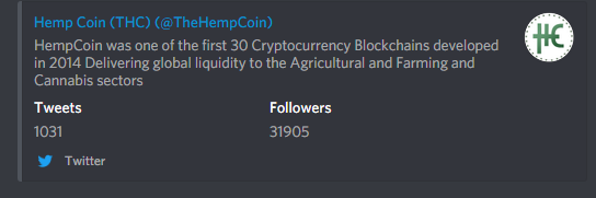Twitter https://twitter.com/TheHempCoin