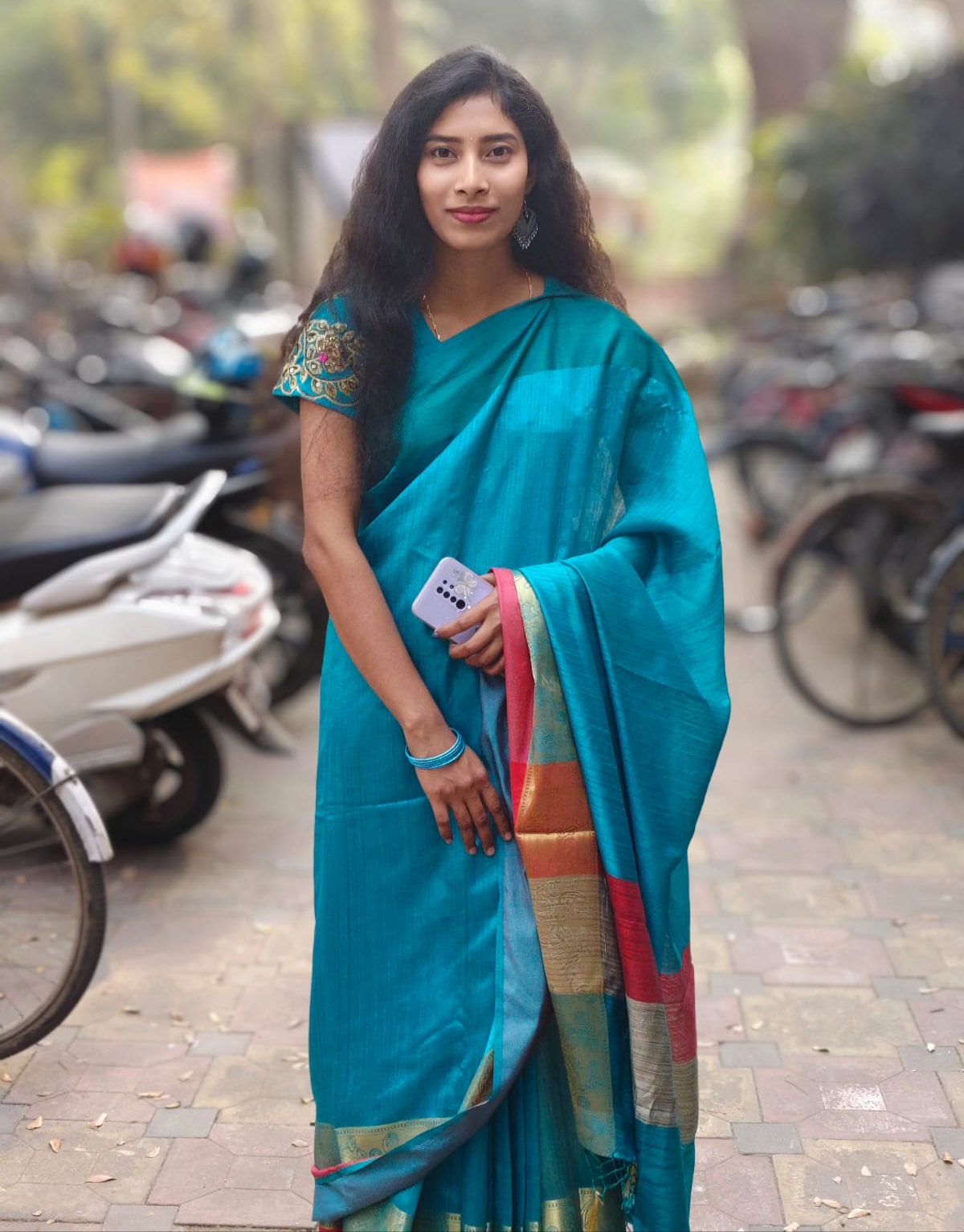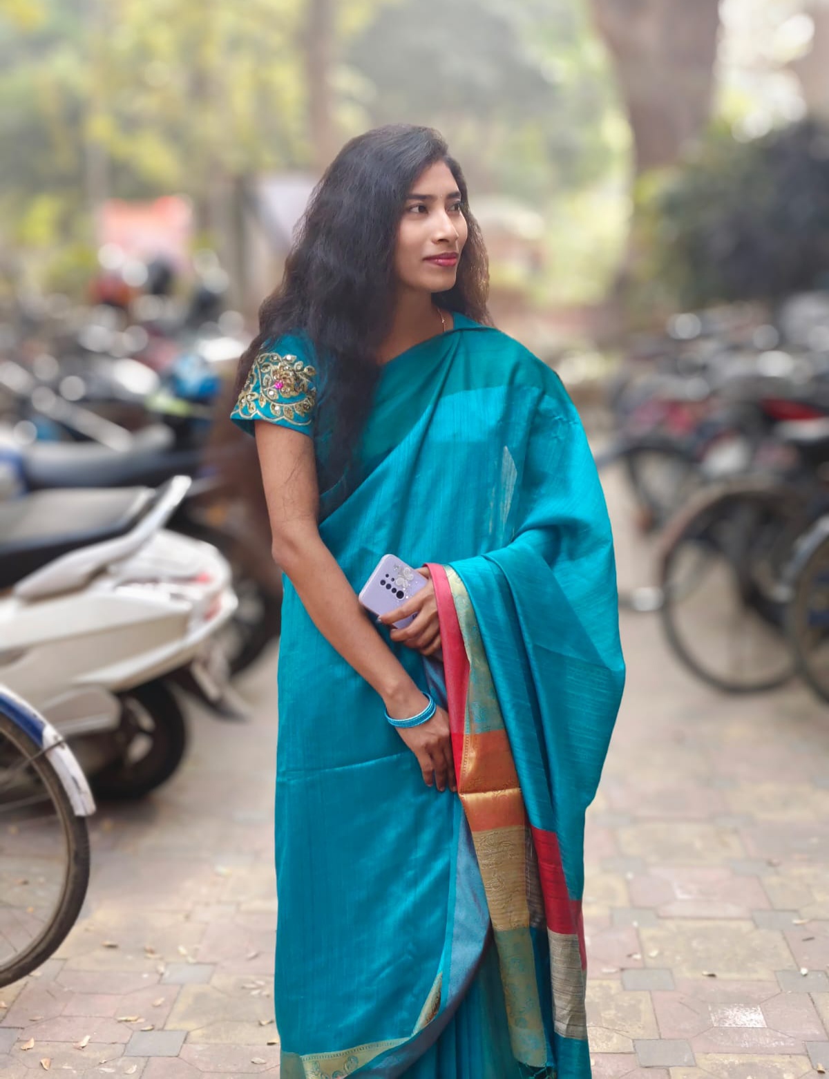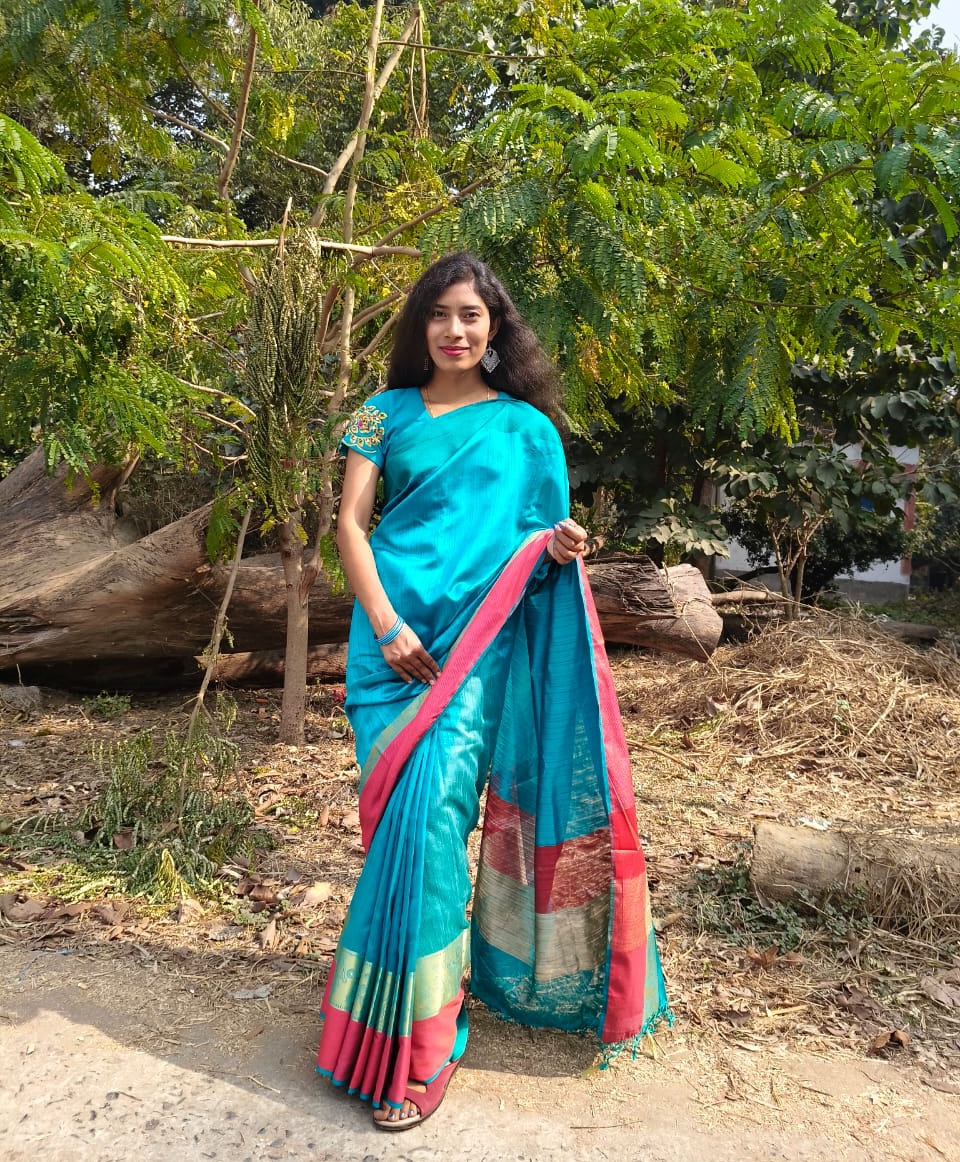 In the first session, after the teachers and faculty members had departed, refreshments were served on one side, while on the other, the juniors were welcomed with a rose and a file each. Meanwhile, to bid farewell to the seniors, each of them was presented with a rose, a file, and a commemorative crest. Many attendees also ventured outside—to the pond ghat or amidst the natural surroundings—to capture photographs to their heart's content. This was because, for this special occasion, the boys had come dressed in Panjabis and the girls in Sarees. My friends and I also headed to the pond bank to take pictures; consequently, we missed the opportunity to photograph those special moments of welcome and farewell. I, too—clad in a Saree—took a few photographs.