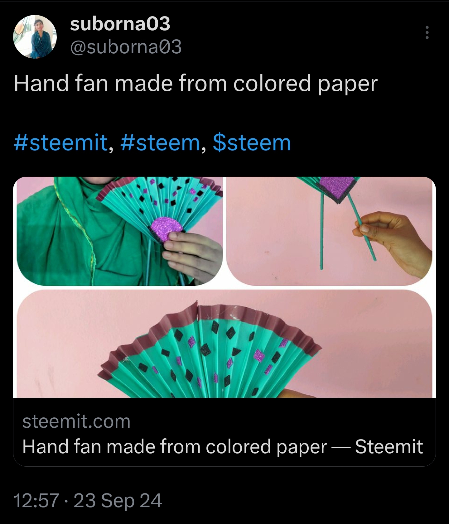 Following the above six steps I made today's papercraft which is a hand fan made of colored paper. .I got this wonderful hand fan idea from watching youtube videos and creatively presented each step by step hand fan making process in front of you. Mainly because of the intense heat in Bangladesh at present I have come to you by making such a craft and I hope you all will like this wonderful craft I have made.