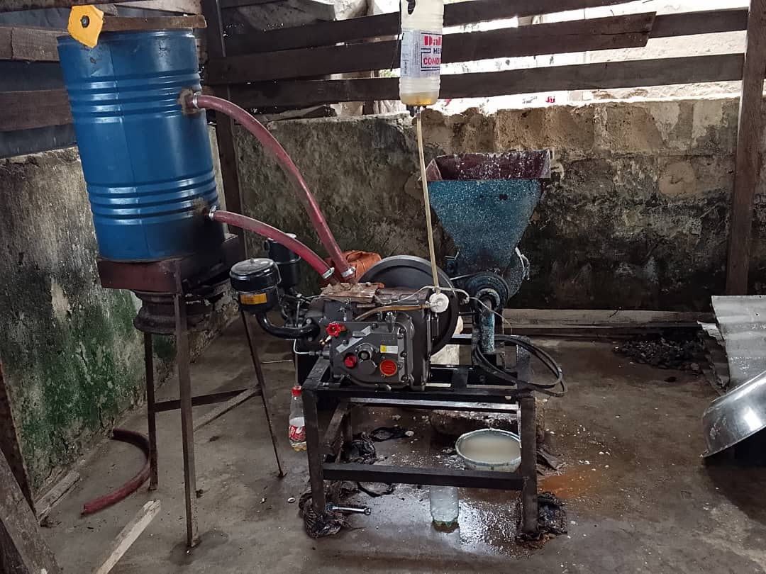 Just a tip in, if you want to know how the machine that powers the grinder looks like, here it is. It's not that big, at least for the one that is not done in mega way. It's run by a petrol engine. The big drum you are seeing there is the coolant, it keeps the engine cool because of the hard task it's undergoing.
