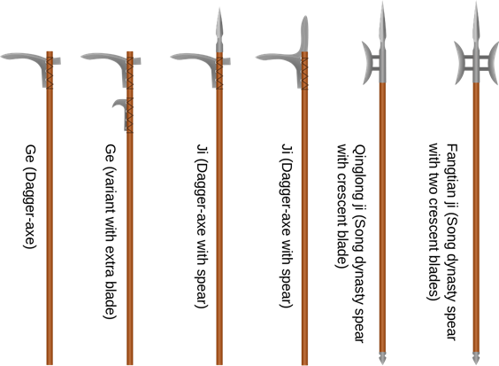 Among these items there are the dagger-axes, known as戈 (gē) in Chinese. Those familiar with martial arts or perhaps even related movies will recognise these dagger-axes that are mounted to pole. While this type of weapon may seem like an invention to help chop bamboo and farm, this was not the case. The sheer purpose of this weapon was to be used in battle. It comes as the very first known weapon in Chinese history.