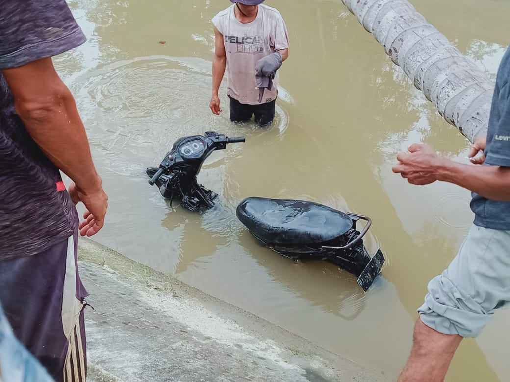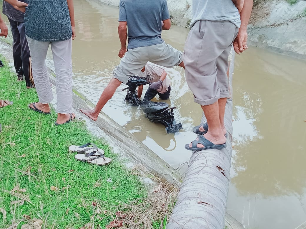 Acts of kindness Membantu Mengangkat Sepeda Motor yang terjatuh dalam Sungai