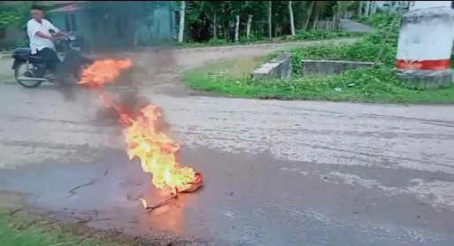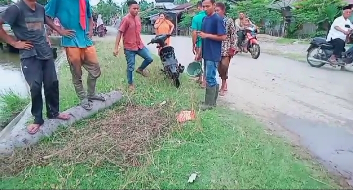 Nasib malang menimpa salah satu warga desa pedalaman Aceh Utara, Kendaraan roda dua yang di tumpangi terpaksa harus di dorong ke sungai karena telah terjadi kebakaran akibat tangki motor merek Supra miliknya mengalami kebocoran hingga mengakibatkan kendaraannya terbakar dengan seketika dan terjadi kepanikan warga setempat yang melihat kejadian tersebut.