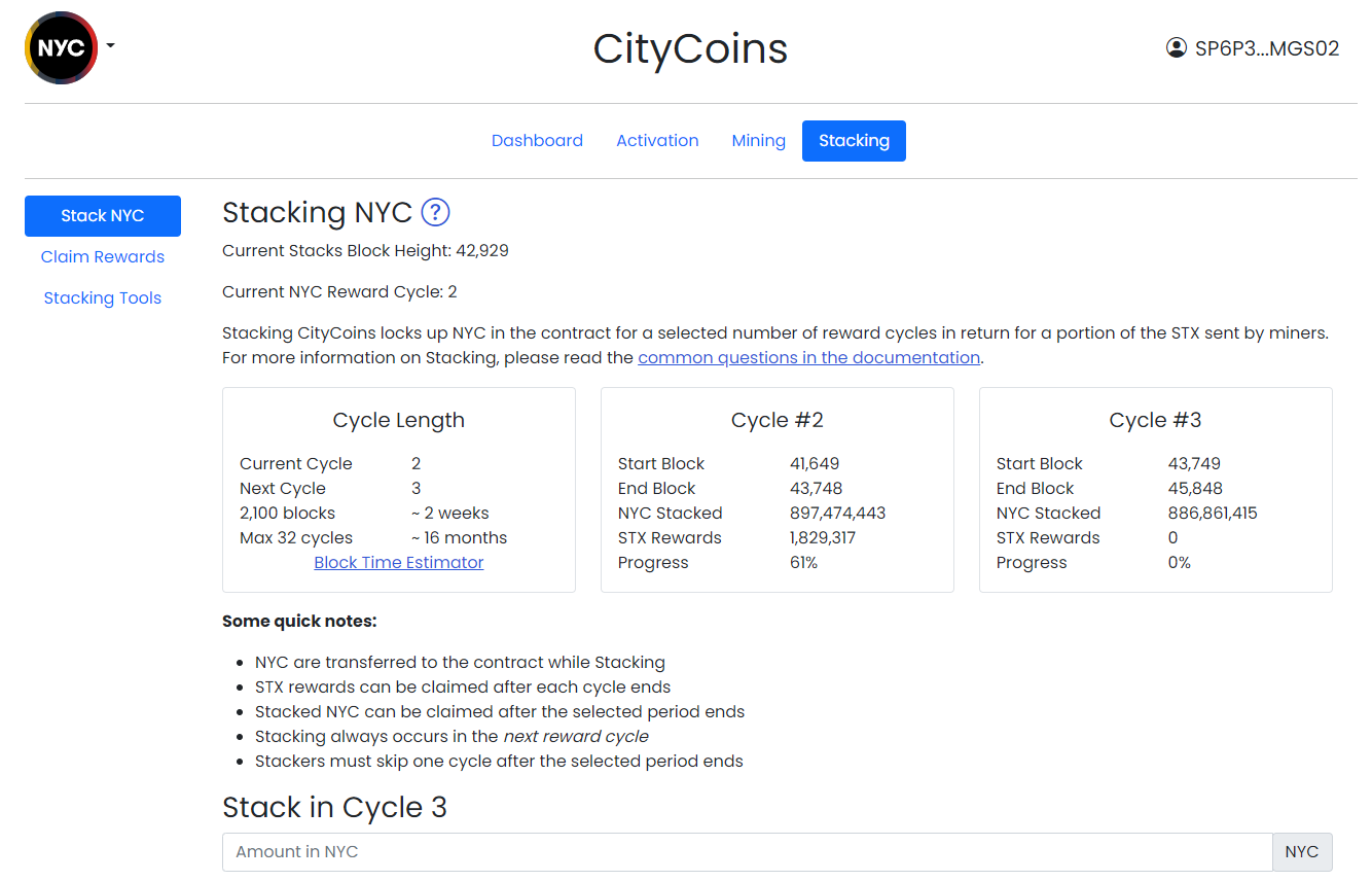 [Stacks] NYC coin 채굴해서 스테이킹해서 다시 스택스 벌기