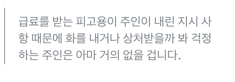 급료를 받는 피고용이 주인이 내린 지시 사항 때문에 화를 내거나 상처받을까 봐 걱정하는 주인은 아마 거의 없을 겁니다.