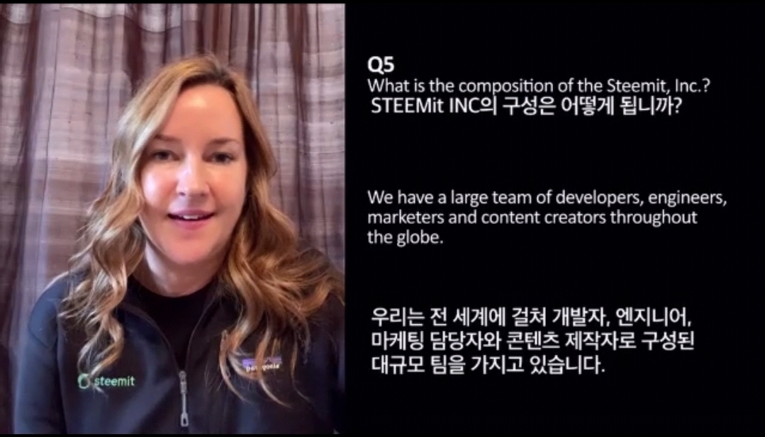 그리고 스팀잇 회사의 규모가 어떤가에 대한 질문에 대해 전세계에 걸쳐 개발자, 엔지니어, 마케팅 담당자, 콘텐츠 제작자로 구성된 대규모 팀으로 구성되어 있다고 합니다.
