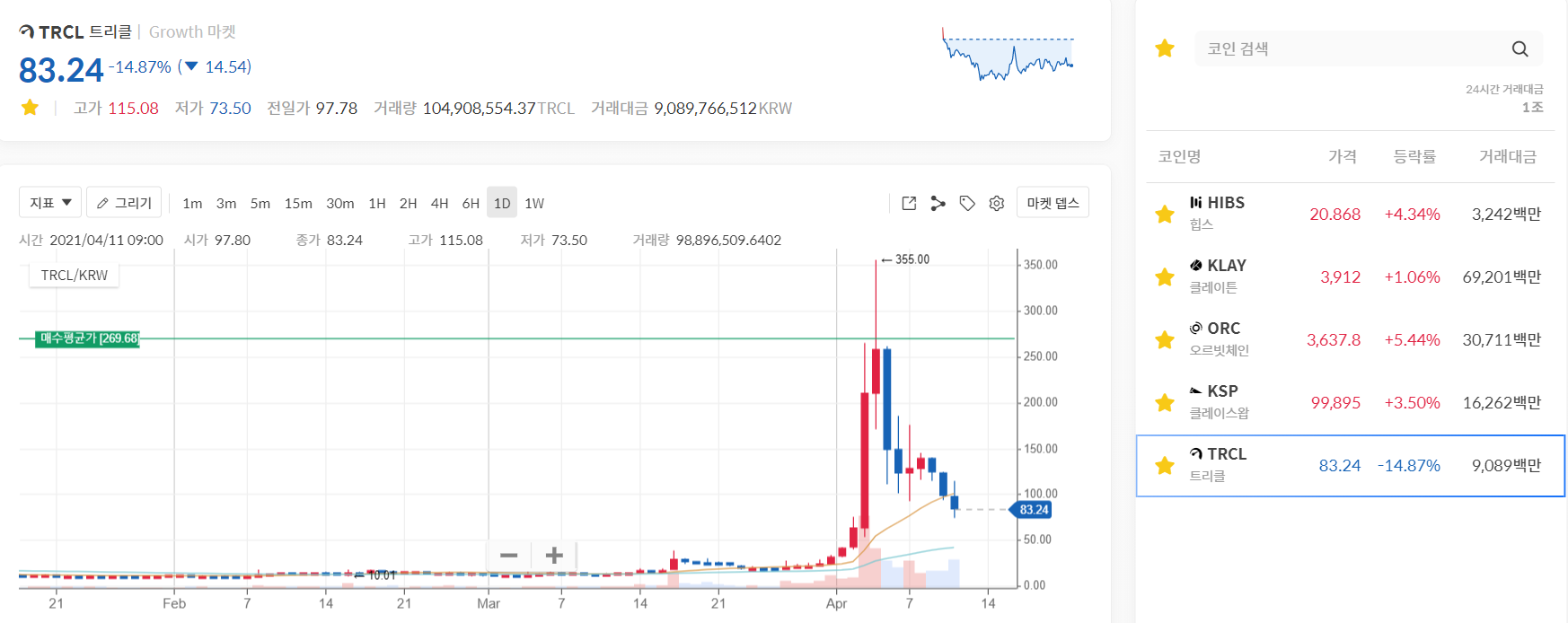 뭐 50개 코인중 하나 물렸다고 손실날 흉아도 아니지만...