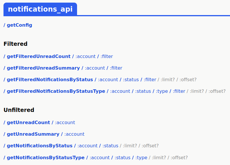 A completely new set of methods for retrieving account notifications. The notifications can be filtered by following account properties: