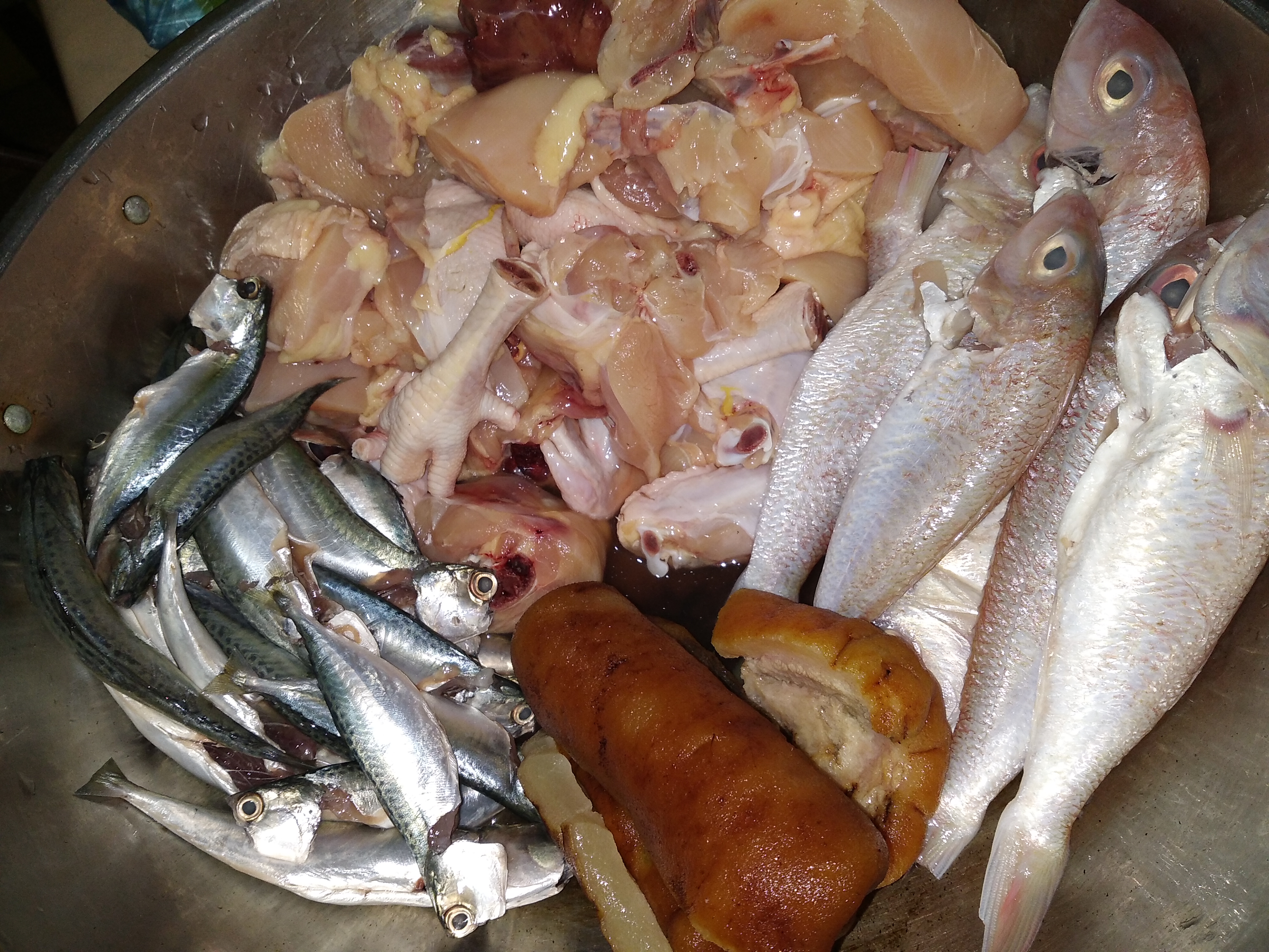 Semoga jumlah protein yang tersedia di foto itu bisa memenuhi kebutuhan keluarga selama beberapa hari.