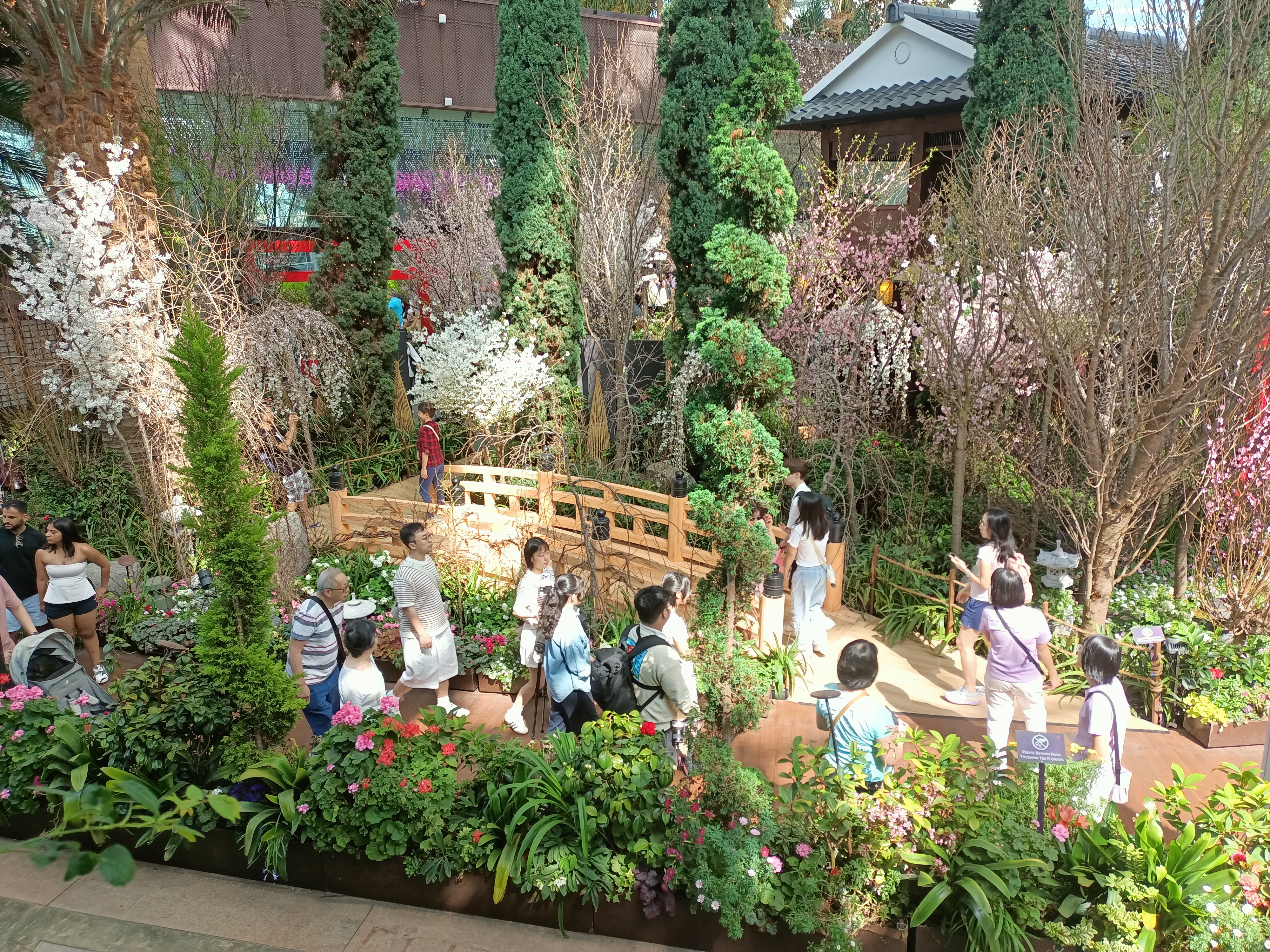This year, there are over 30 varieties of cherry, peach, and plum blossoms on display in the Flower Dome. As usual, as with all flower displays, there was a crowd – tourists and locals at the Sakura display. This made taking photos difficult. Everyone was in everyone’s way.