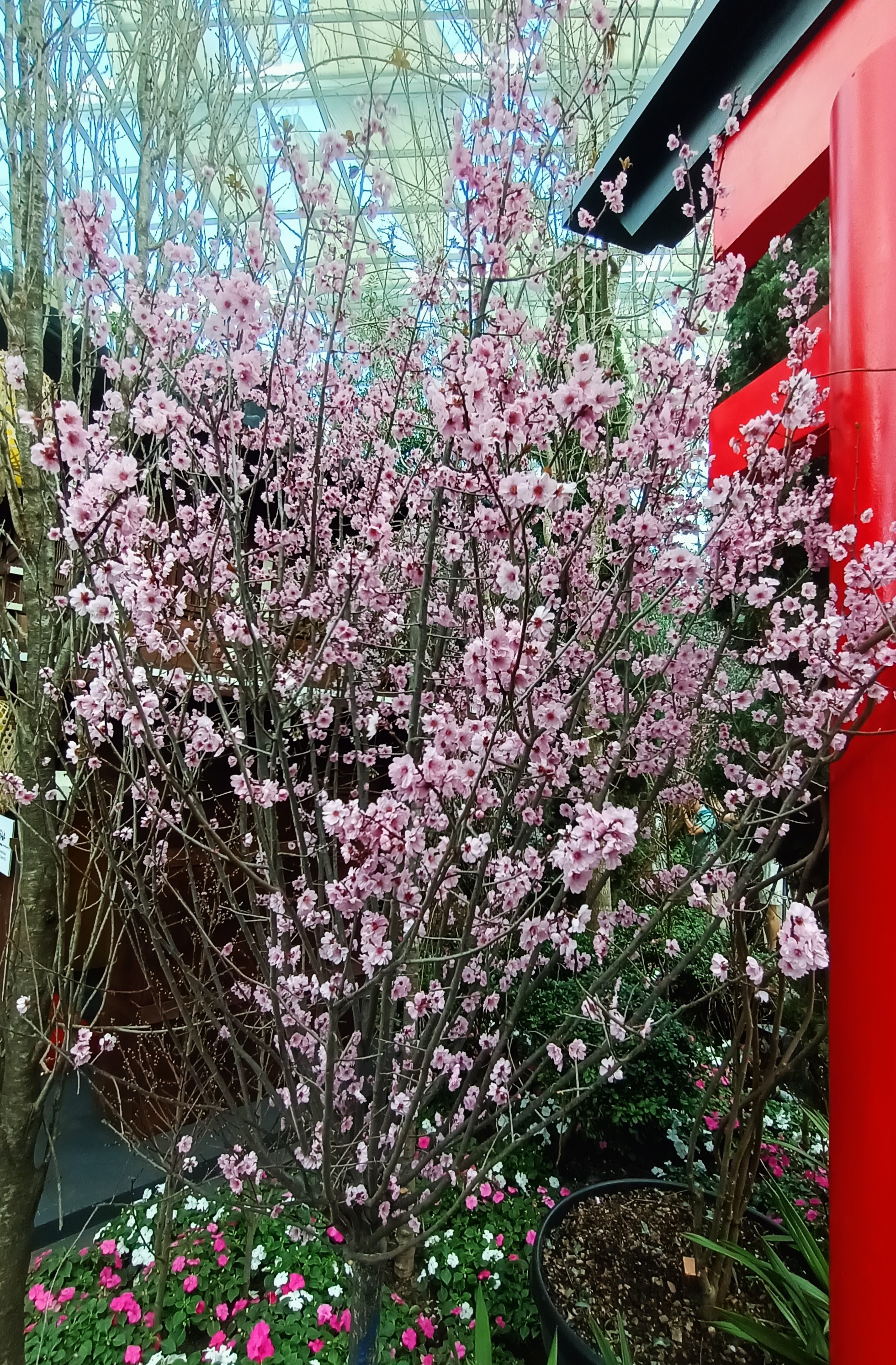 Sakura, or Cherry blossoms as you know them, are not meant for the tropics. The weather is just not suitable. However, you can see Sakura in bloom in the Flower Dome, where it is eternal spring. Of course, there is no comparing them with those in Japan.