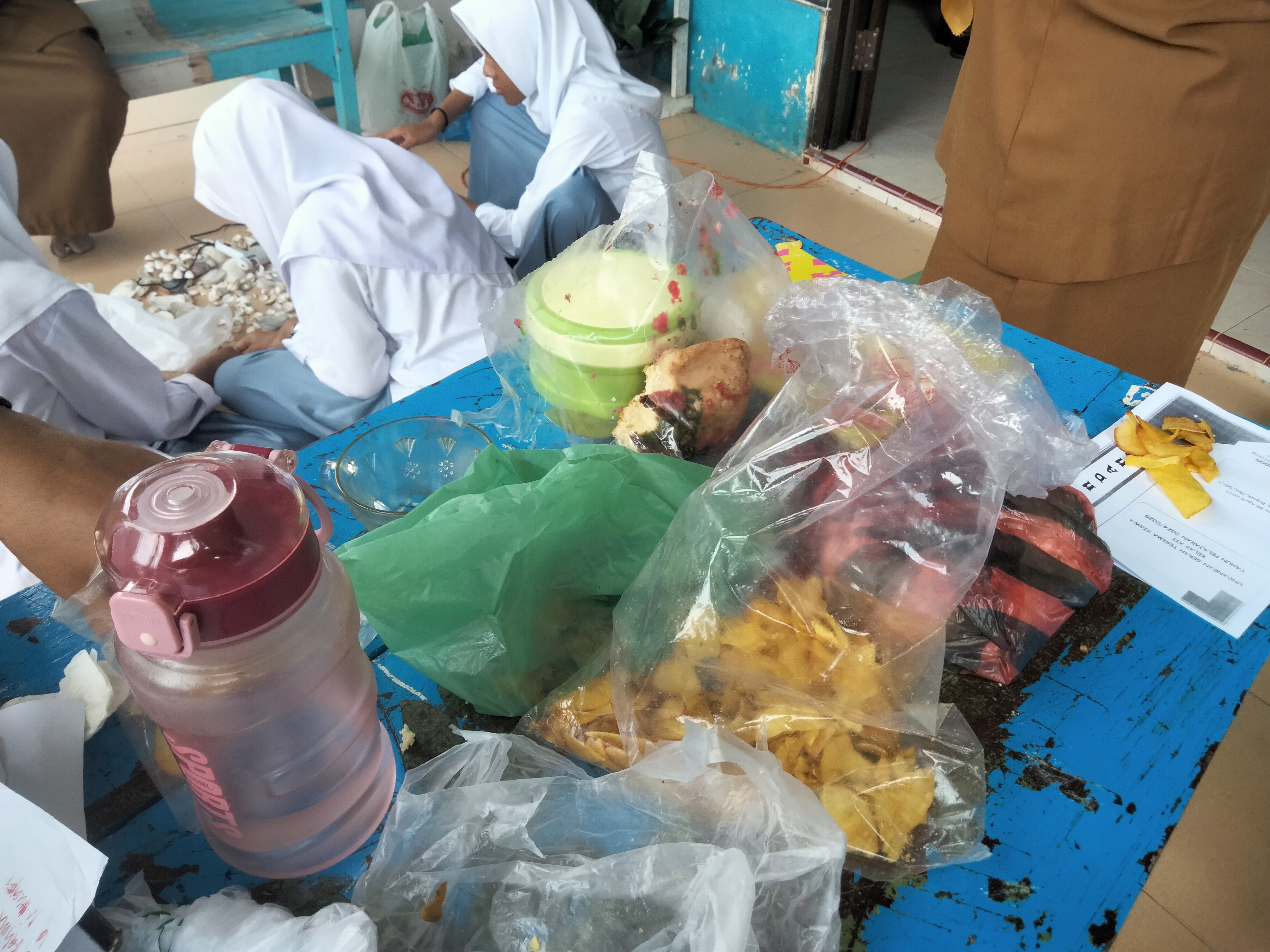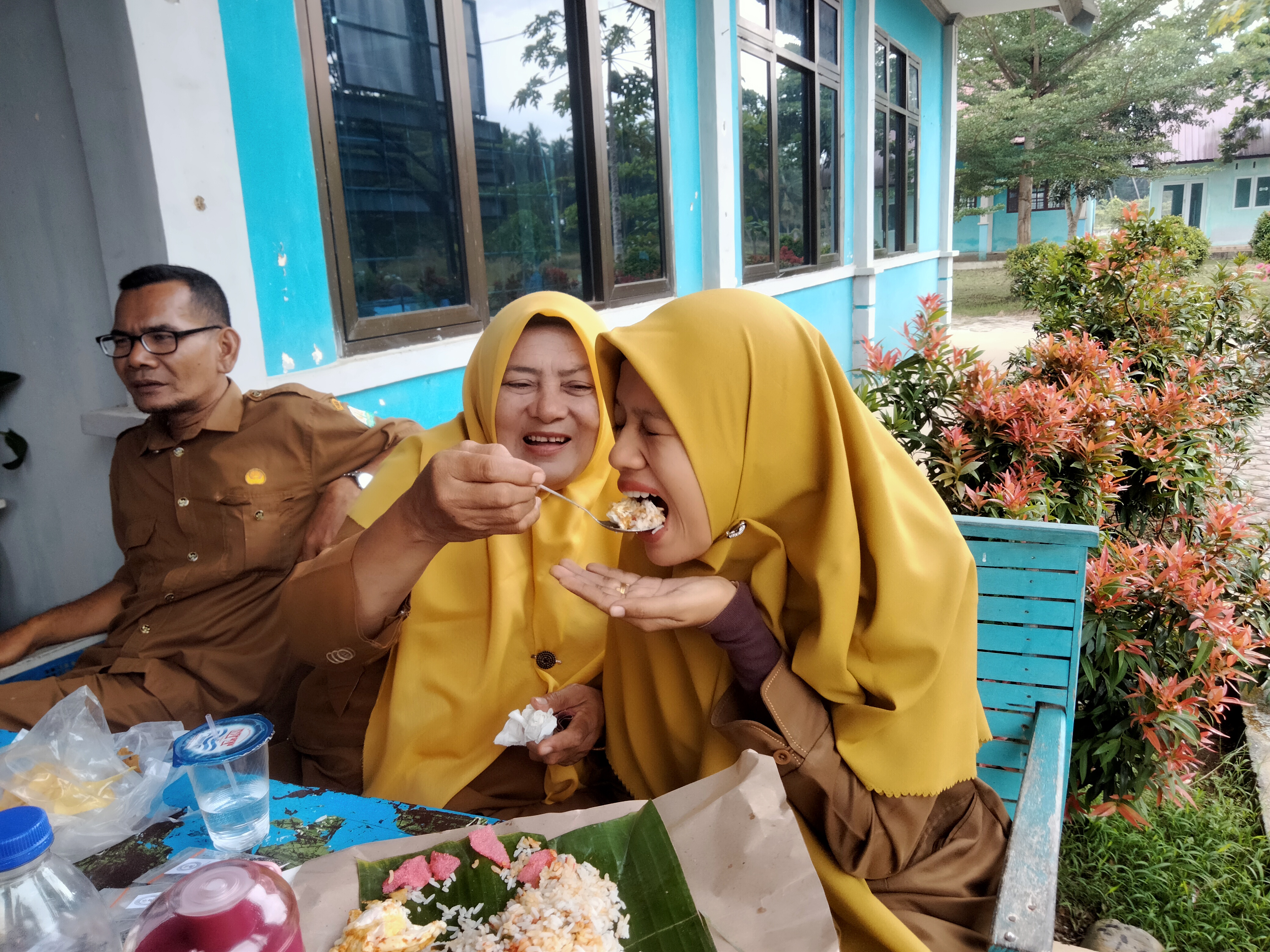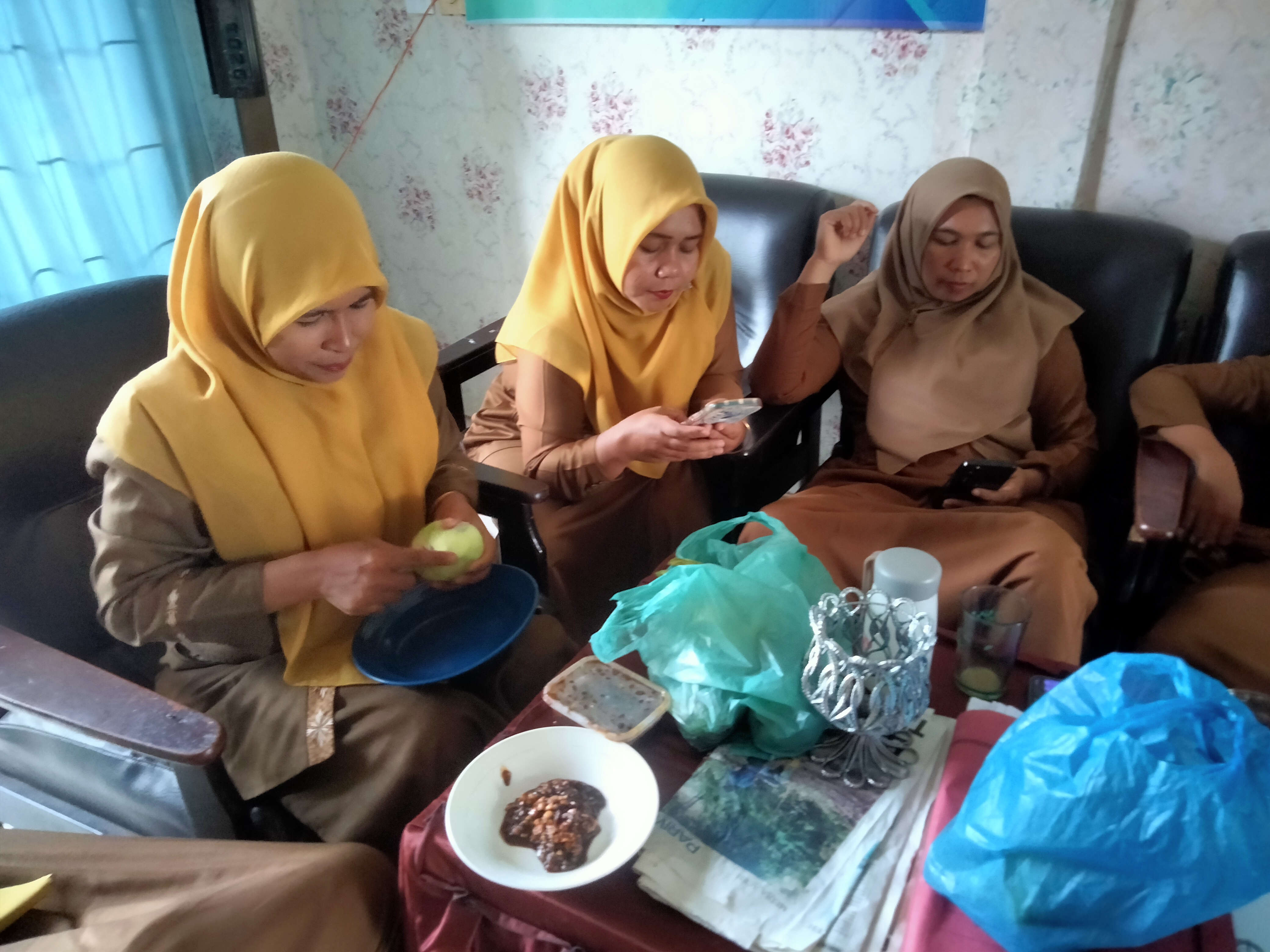 Di sela-sela kegiatan kami tidak lupa acara makan-makan bersama di sekolah dengan bermacam cemilan serta makanan lainnya, yang membuat lebih indah lagi ada pemandangan yang menyita perhatian saya yaitu pada teman saya yang sedang hamil, dan seorang guru senior yang sebentar lagi akan pensiun kami sering memanggilnya nenek...