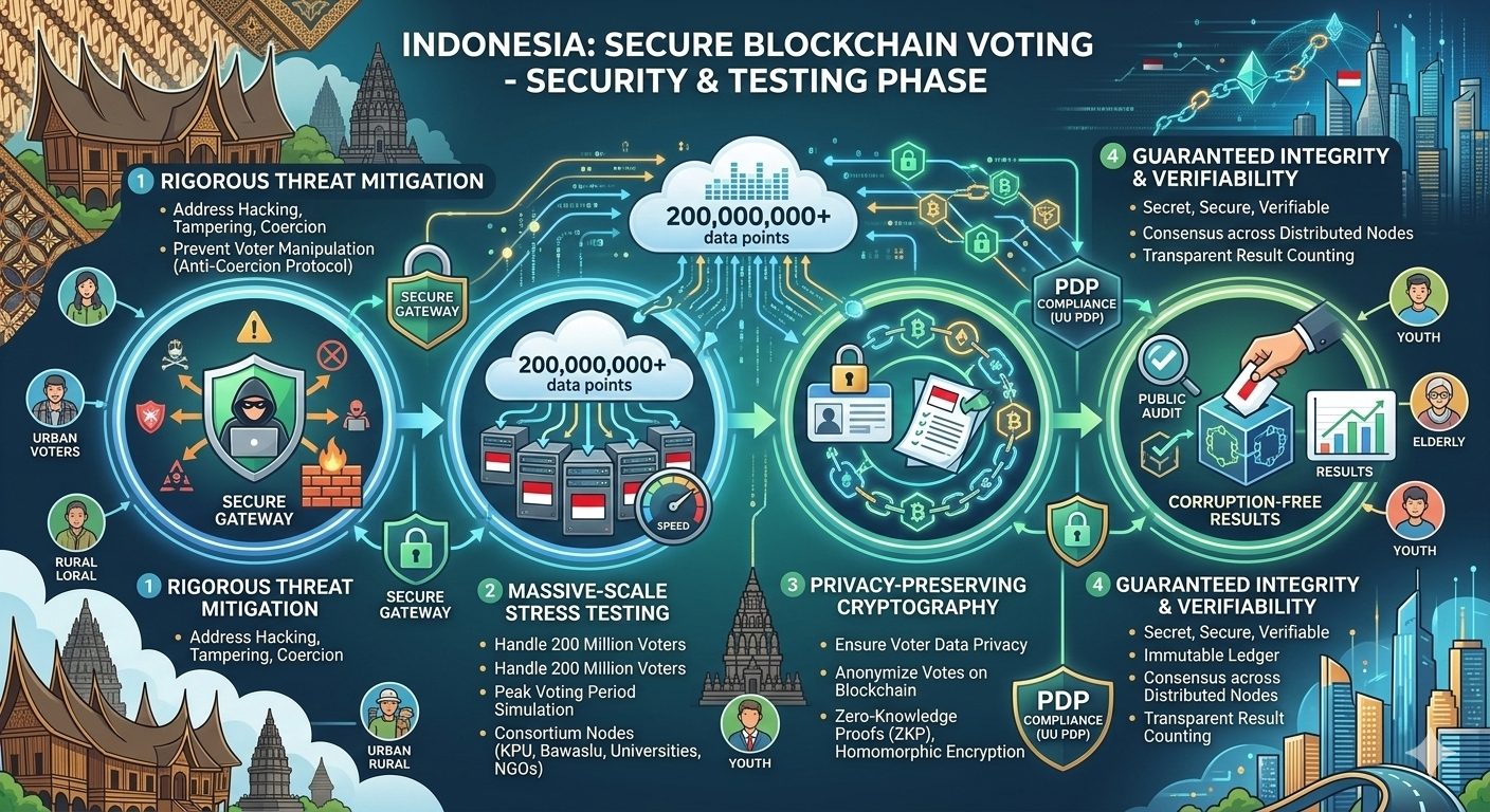 | mpu.gandring [Posts] 3:05:51 pm Fase keamanan dan pengujian menjamin pemilu Indonesia tetap rahasia, aman, dan dapat diverifikasi melalui mitigasi ancaman, uji beban 200 juta pemilih, serta kriptografi sesuai hukum perlindungan data |