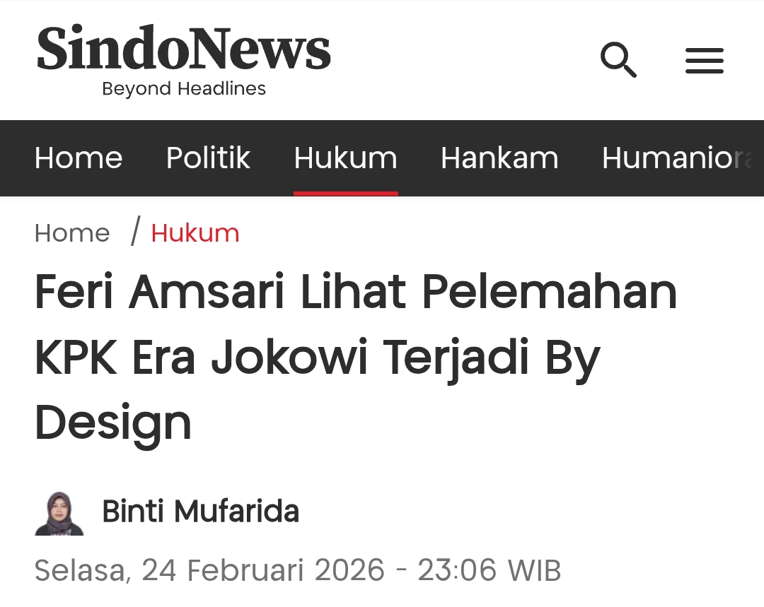 | mpu.gandring [Posts] 3:03:36 pm Feri Amsari menilai pelemahan Komisi Pemberantasan Korupsi pada era Joko Widodo dirancang lewat revisi UU 19/2019, membuat pemberantasan korupsi melemah dan rakyat paling dirugikan |