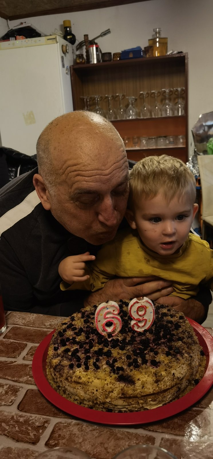 I present to you my Grandpa Yani, 69 years old and my nephew Boril, 1 year old .