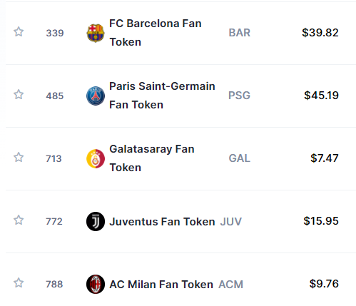 Cabe destacar que existen diferentes fans tokens de equipos aliados a Socios, por ejemplo, Barcelona, Juventus, París Saint-Germain, Galatasaray, Milán... Se pueden adquirir en la la aplicación de Socios.