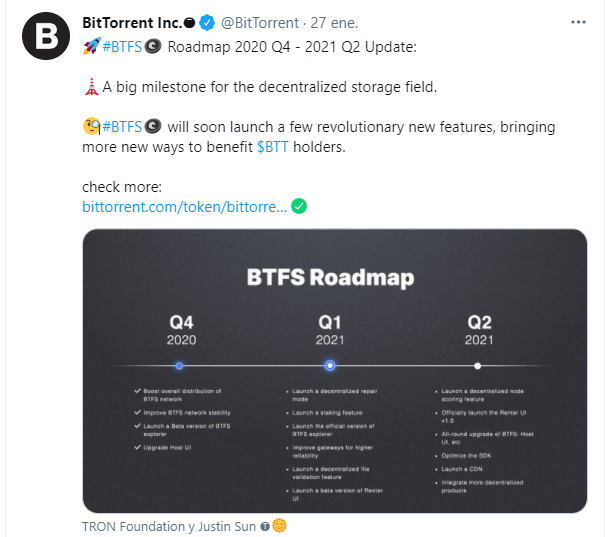 También podemos encontrar el Roadmap (hoja de ruta) del año 2020-21, en un tweet realizado por la cuenta oficial de BitTorrent en Twitter.