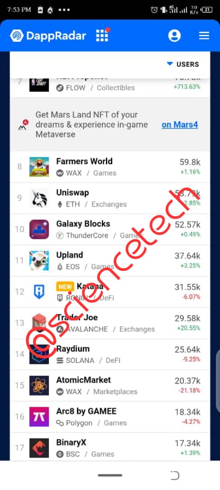 All other screenshots would be gotten from the Dapp radar link