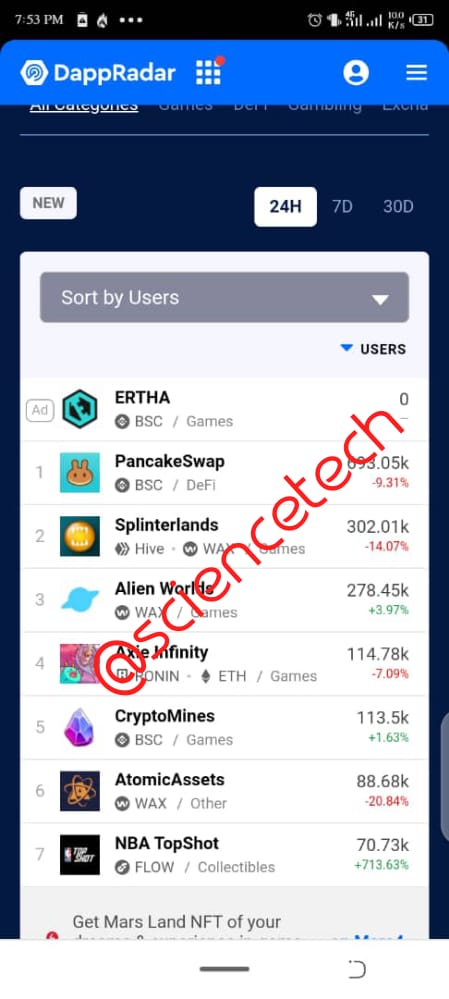 - From there I touch the part written rankings and it opens me to a variety of top Dapps