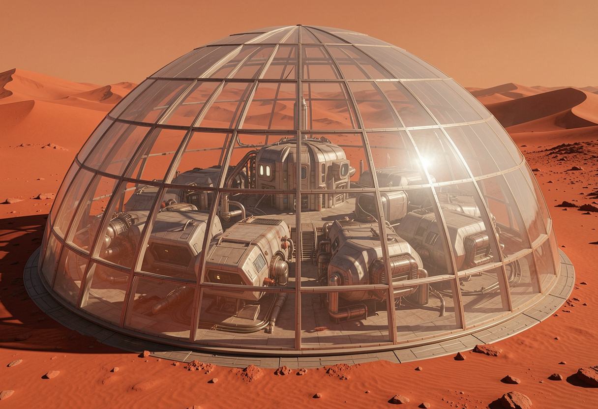 Mars manages with its atmosphere to destroy very small meteors, about the size of a grain of sand or the size of a coin, but little more, the small asteroids a few centimeters in diameter that on Earth would easily end up disintegrating at a high altitude, on Mars they can impact the surface at tens of thousands of kilometers per hour, up to 72,000 km/h, the fastest ones, and in the case of the dome, they would pierce it with a catastrophic result, since the dome is actually like a cylinder of pressurized gas, maintains 100 times more pressure inside than outside.